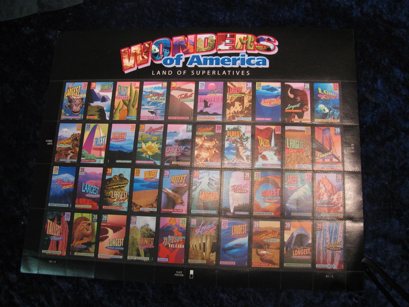 772. Wonders of America Land of Superlatives Mint Sheet of .39c U.S. Stamps. Face value $15.60.