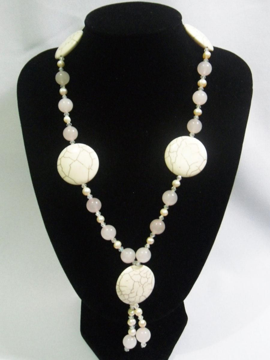 775 HOWLITE,ROSEQUARTZ AND PEACH PEARL NECKLACE,AUTHENT **|**|** 775 HOWLITE,ROSEQUARTZ AND PEACH PEARL NECKLACE,AUTHENTIC PHILIPPINE PEARLS;SIZE-20INCH ; MSRP: $75