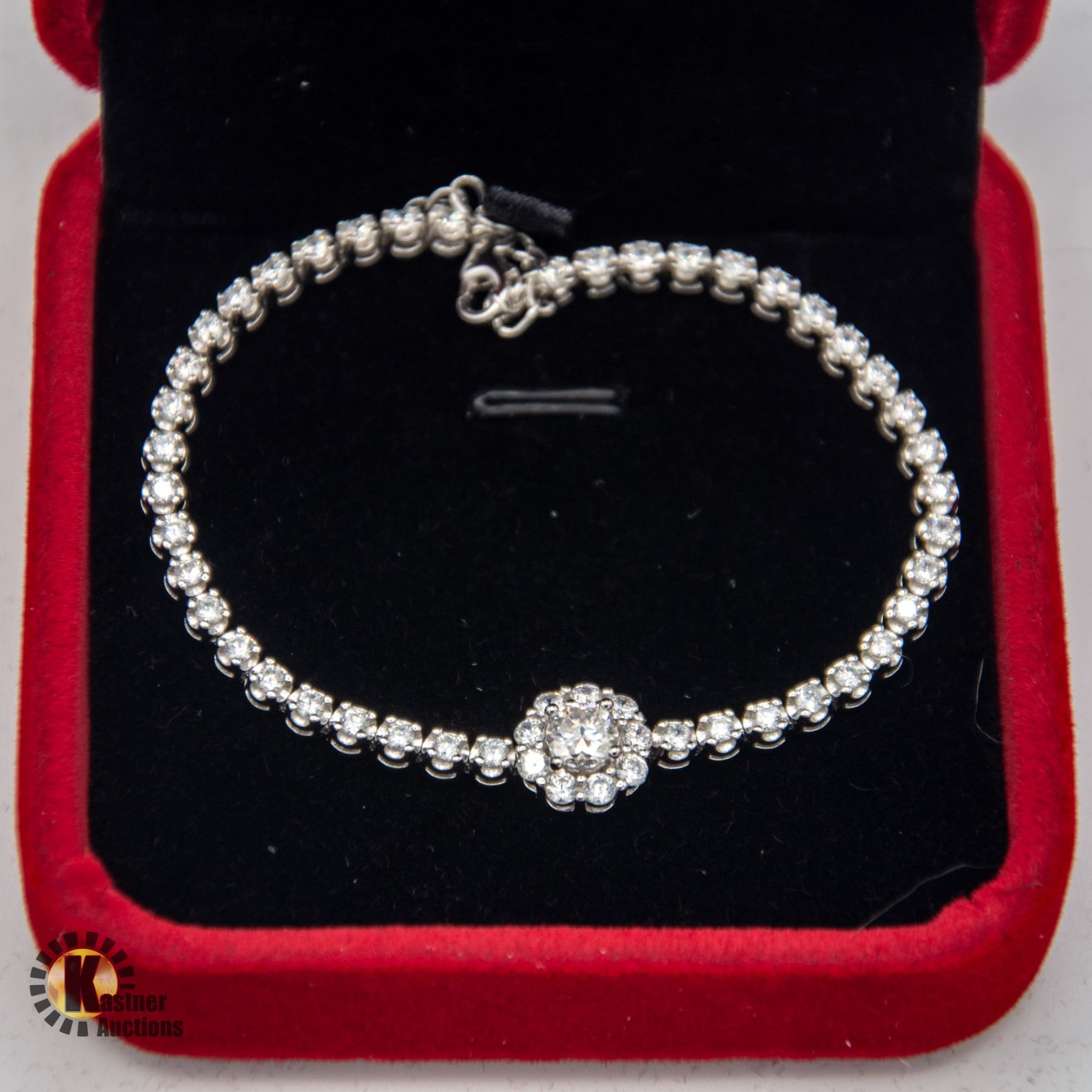 MOISSANITE STONE VVS D IN COLOR SET IN CENTER OF HALO WITH 42 FULL CUT ROUND BRILLIANT CUBIC ZIRCONIUM SET IN THE TENNIS BRACELET **ALL ITEMS MUST BE REMOVED BY 5PM SATURDAY, OCTOBER 19TH 2024. ALL REMAINING ITEMS WILL BE SUBJECT TO A $6.00 PER DAY STORAGE CHARGE. ANY ITEMS REMAINING AFTER MONDAY, NOVEMBER 4TH 2024 WILL BE CONSIDERED FORFEITED. NO REFUNDS WILL BE ISSUED FOR FORFEITED ITEMS. TO SCHEDULE A PICK UP APPOINTMENT CLICK HERE