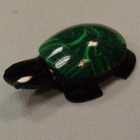 78 CTS CARVED MALACHITE AND ONYX TURTLE 46x28 MM