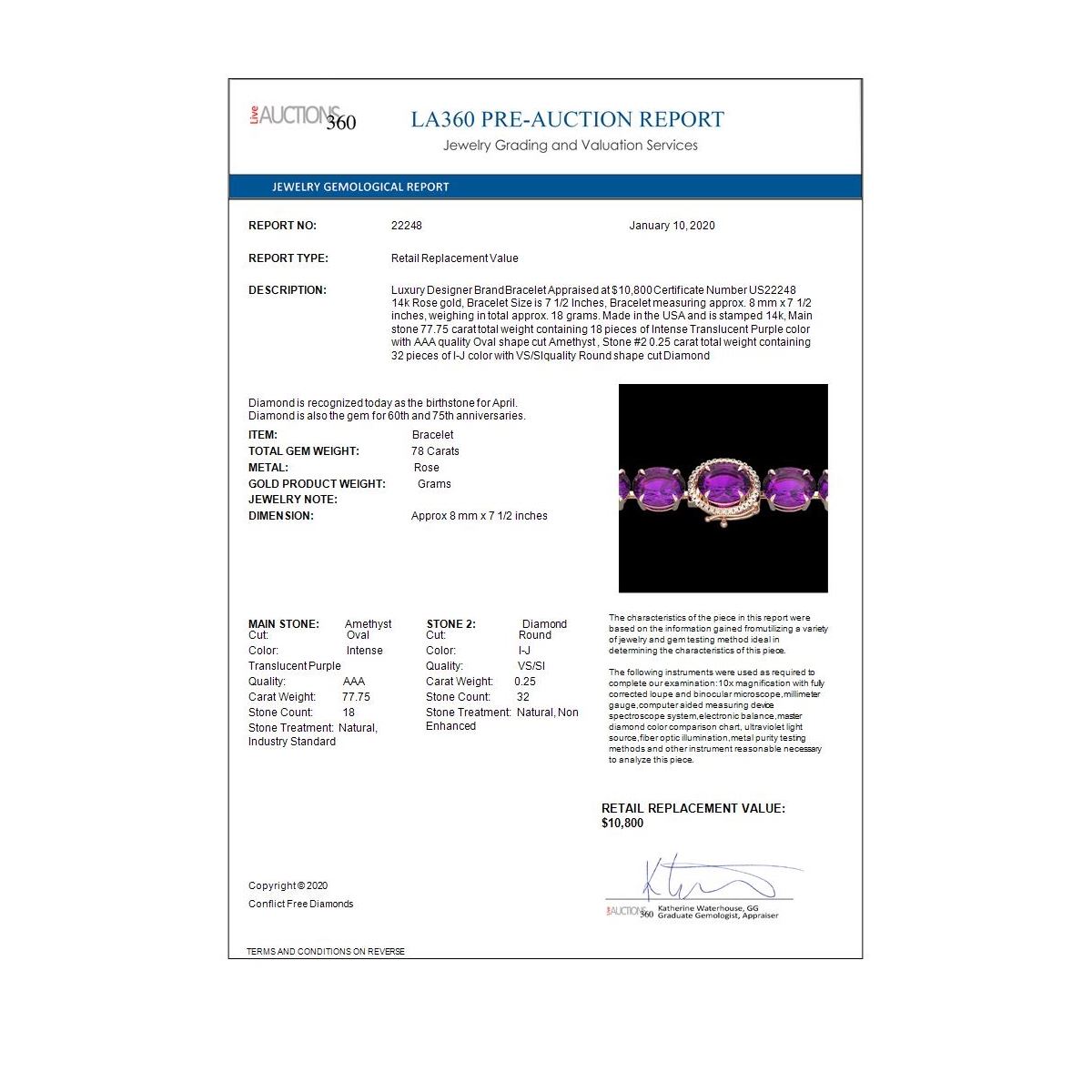 REF-218F2M - SKU: 22248 ---- 78 ctw Amethyst & Micro VS/SI Diamond Bracelet 14k Rose Gold