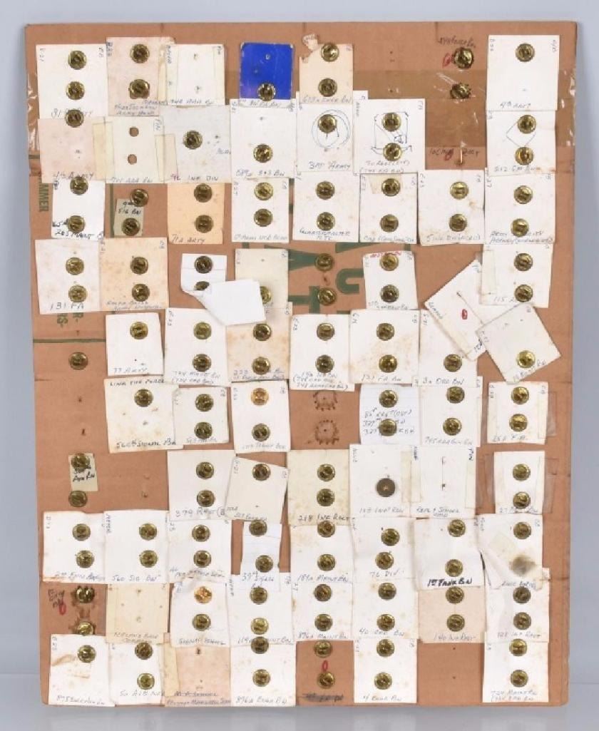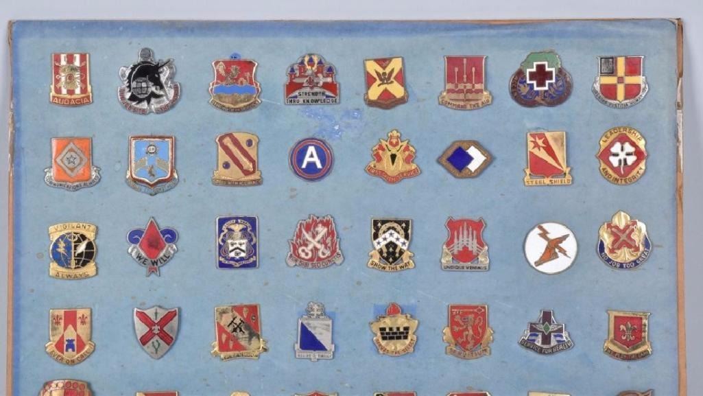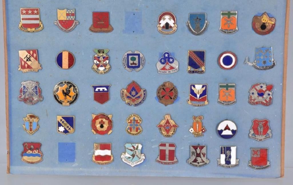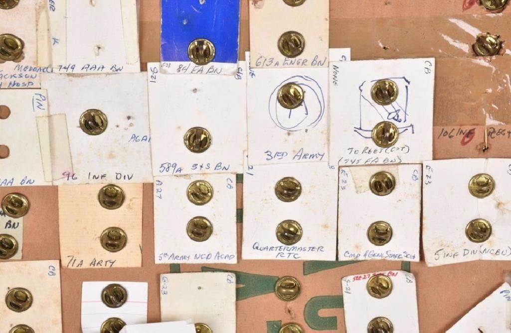 Nice display of pins, many Id'd on the back. Excellent