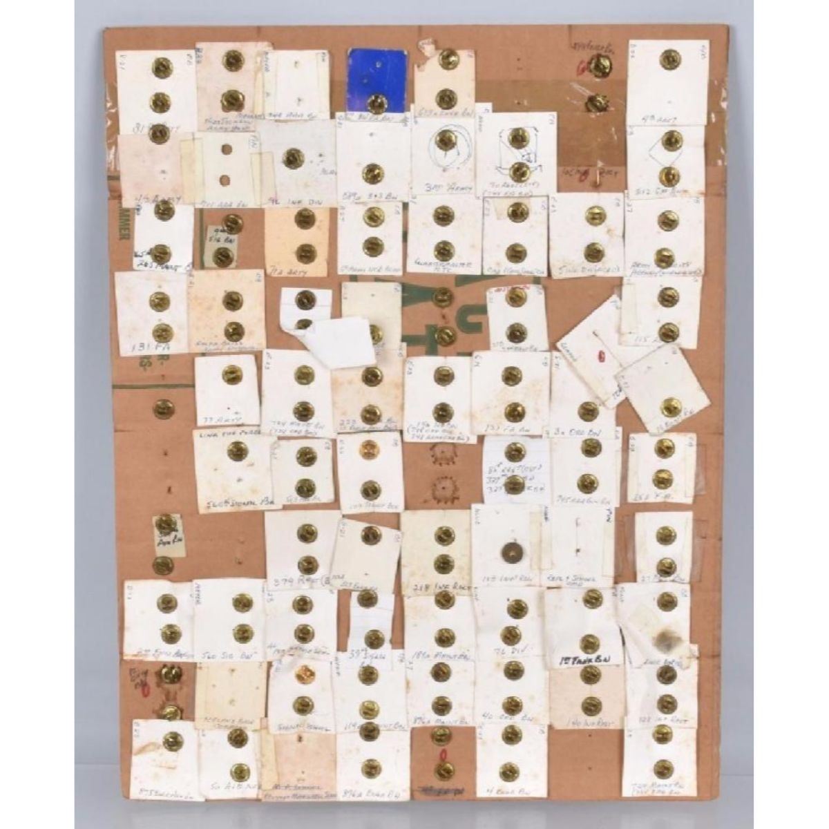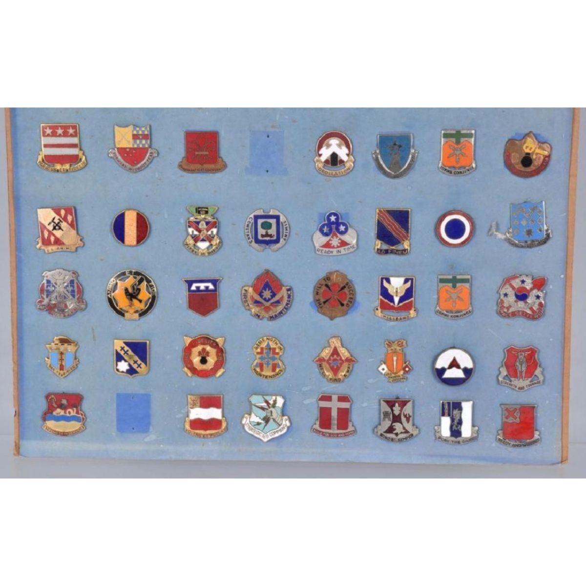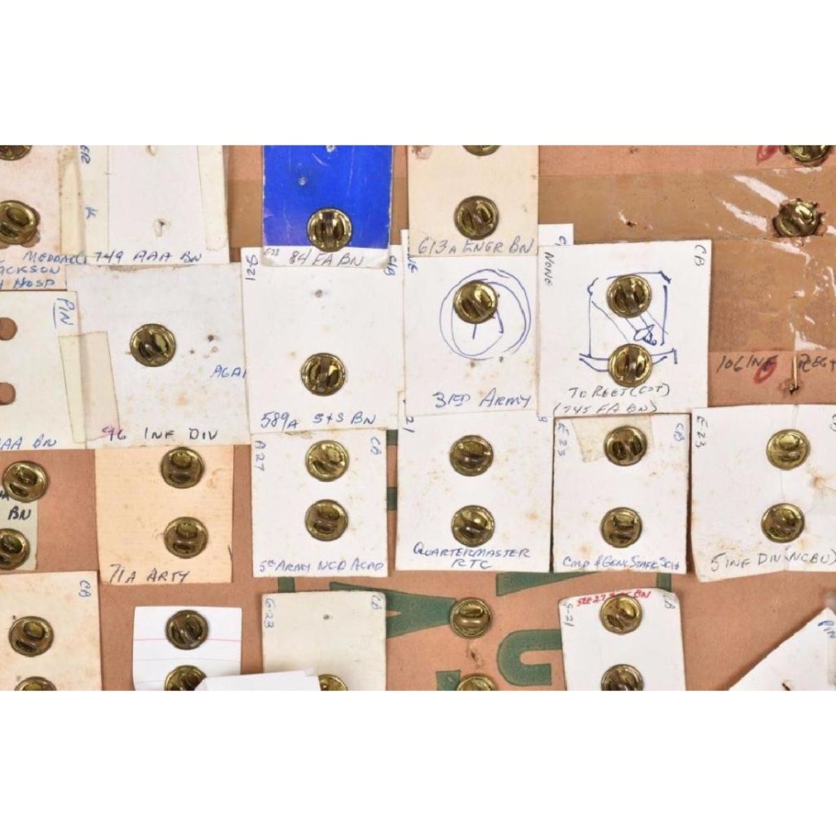 Nice display of pins, many Id'd on the back. Excellent