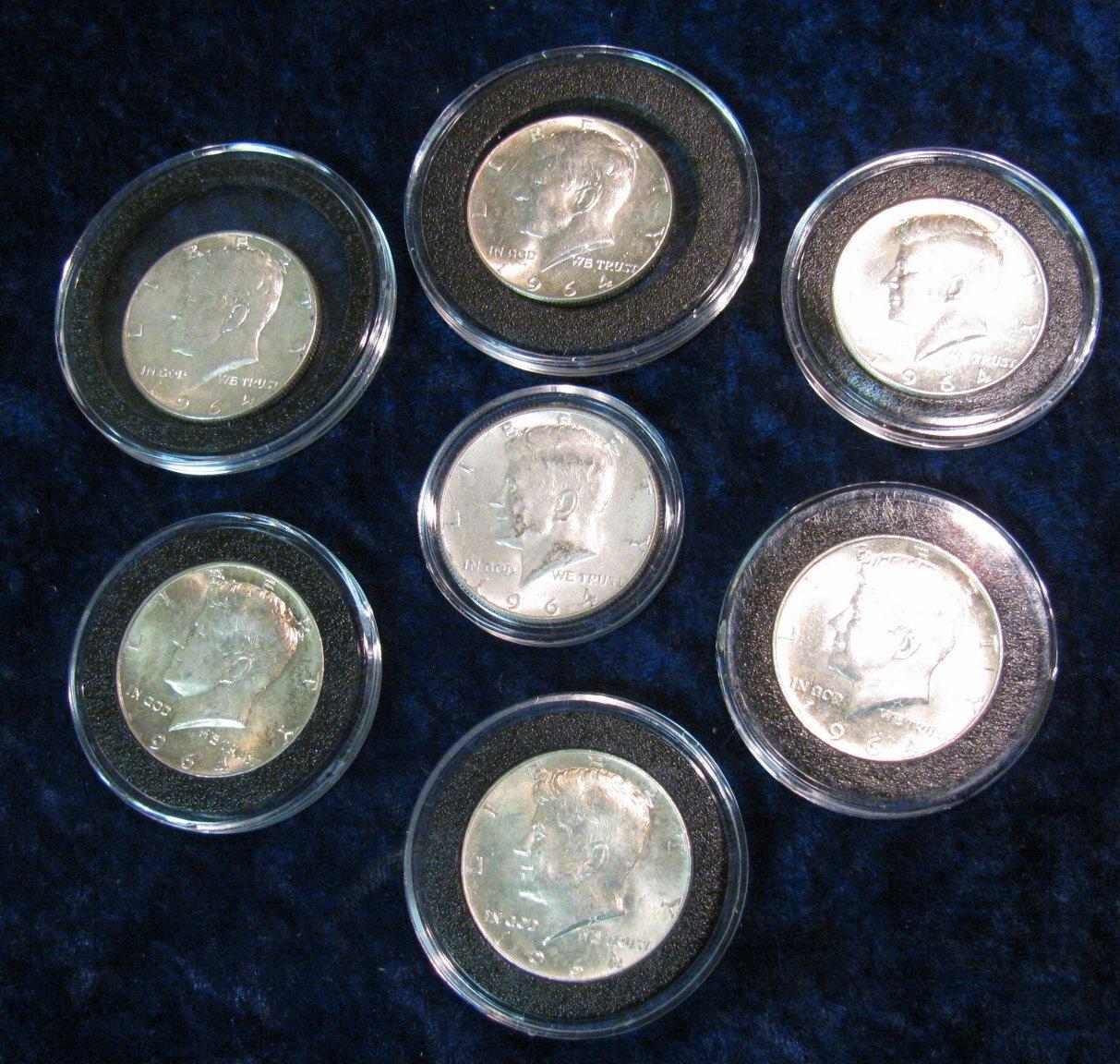 781. (7) 1964P Kennedy Half Dollars all in airtight holders. EF-BU.