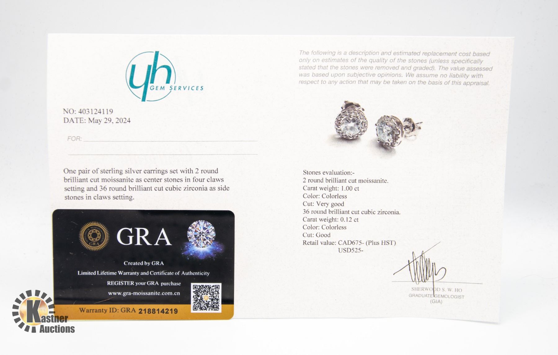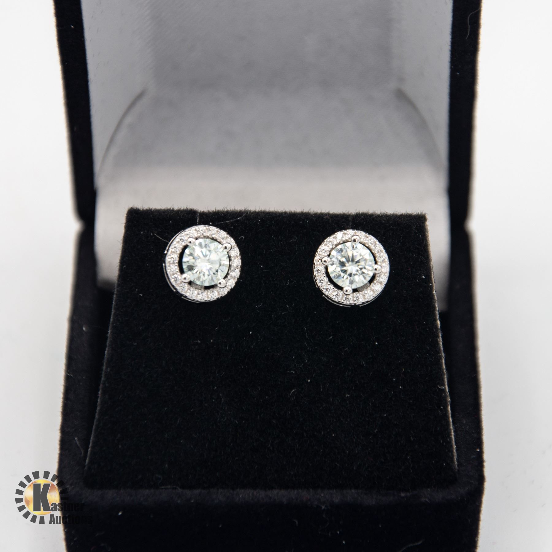 BRILLIANT CUT MOISSANITE STONES VVS D IN COLOR SET IN CENTER OF HALO IN STERLING SILVER EARRINGS RETAIL VALUE $675.00 **ALL ITEMS MUST BE REMOVED BY 5PM SATURDAY, OCTOBER 19TH 2024. ALL REMAINING ITEMS WILL BE SUBJECT TO A $6.00 PER DAY STORAGE CHARGE. ANY ITEMS REMAINING AFTER MONDAY, NOVEMBER 4TH 2024 WILL BE CONSIDERED FORFEITED. NO REFUNDS WILL BE ISSUED FOR FORFEITED ITEMS. TO SCHEDULE A PICK UP APPOINTMENT CLICK HERE