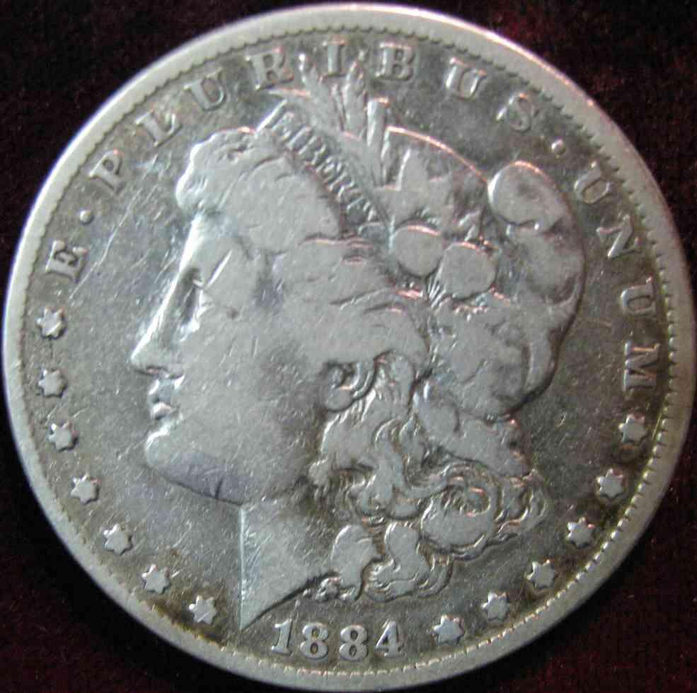 785. 1884 P Morgan Silver Dollar. VG. Reverse scratches.