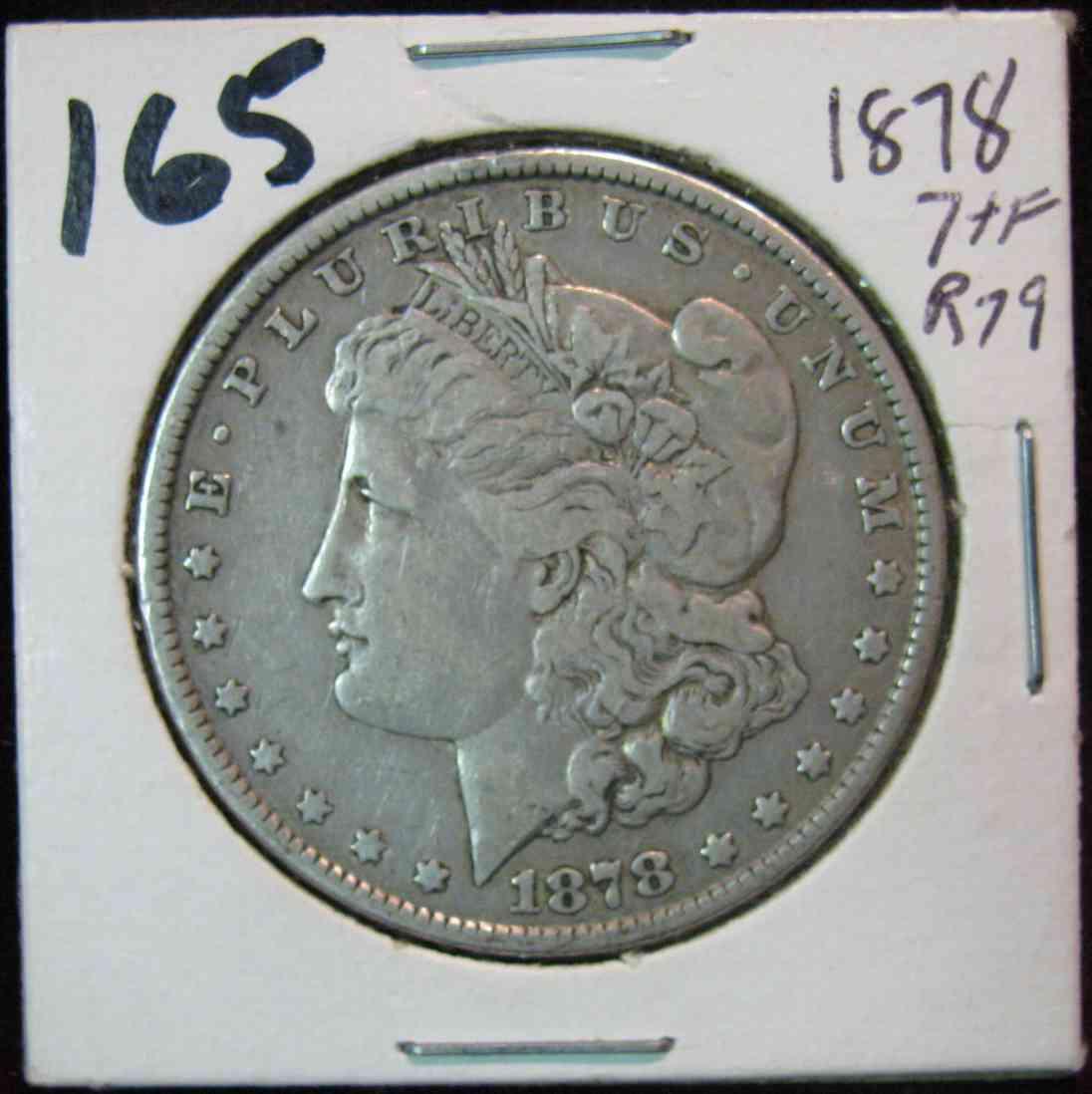 787. 1878 P 7 tail feathers Morgan Silver Dollar. F-12.