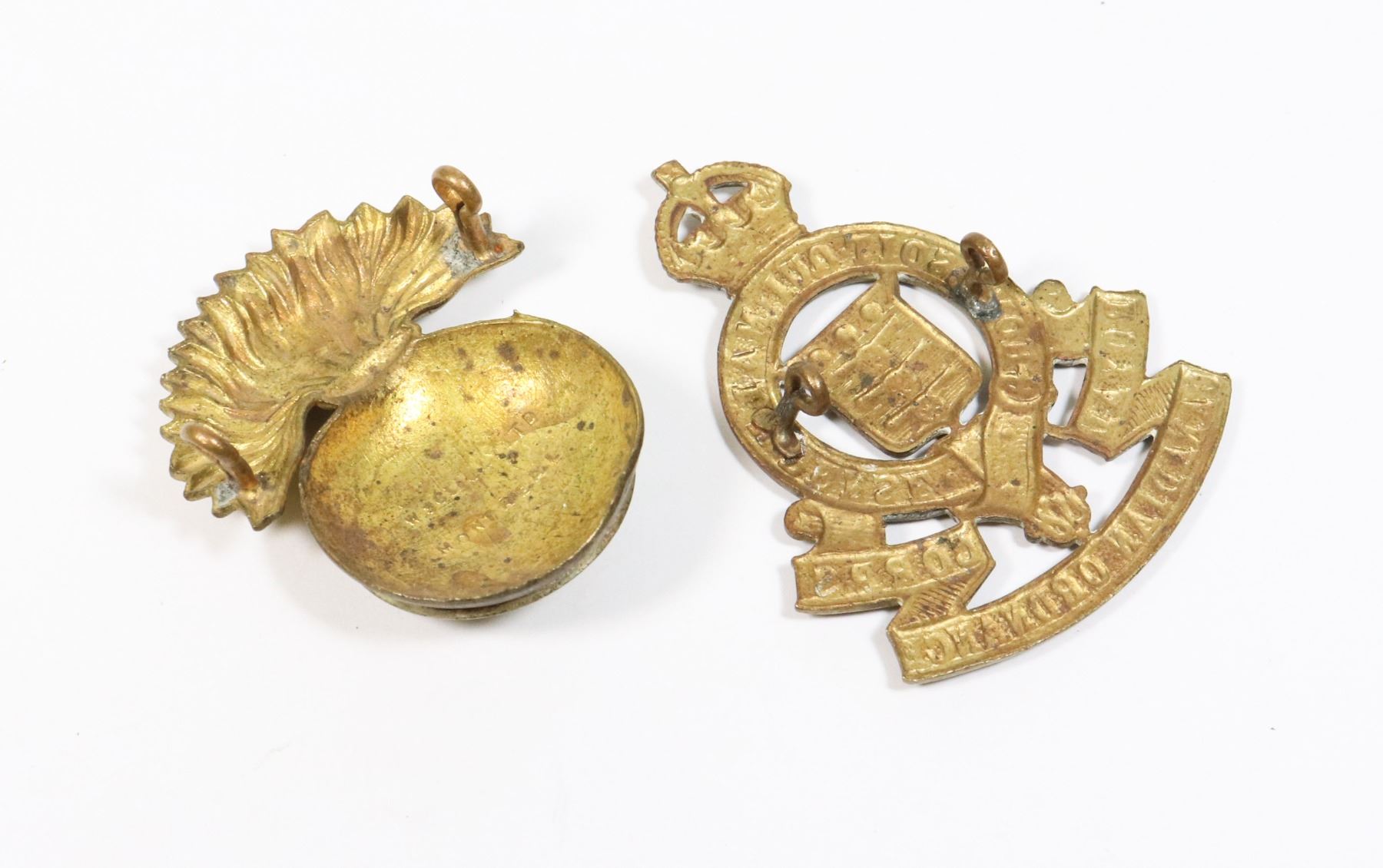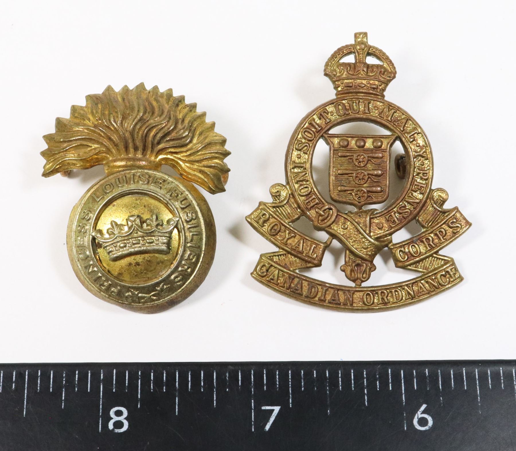 PRINCESS LOUISE FUSILIERS AND ROYAL CANADIAN ORDNANCE CORPS WORLD WAR TWO CANADA ALLIED FORCES LOT OF 2 CAP BADGES