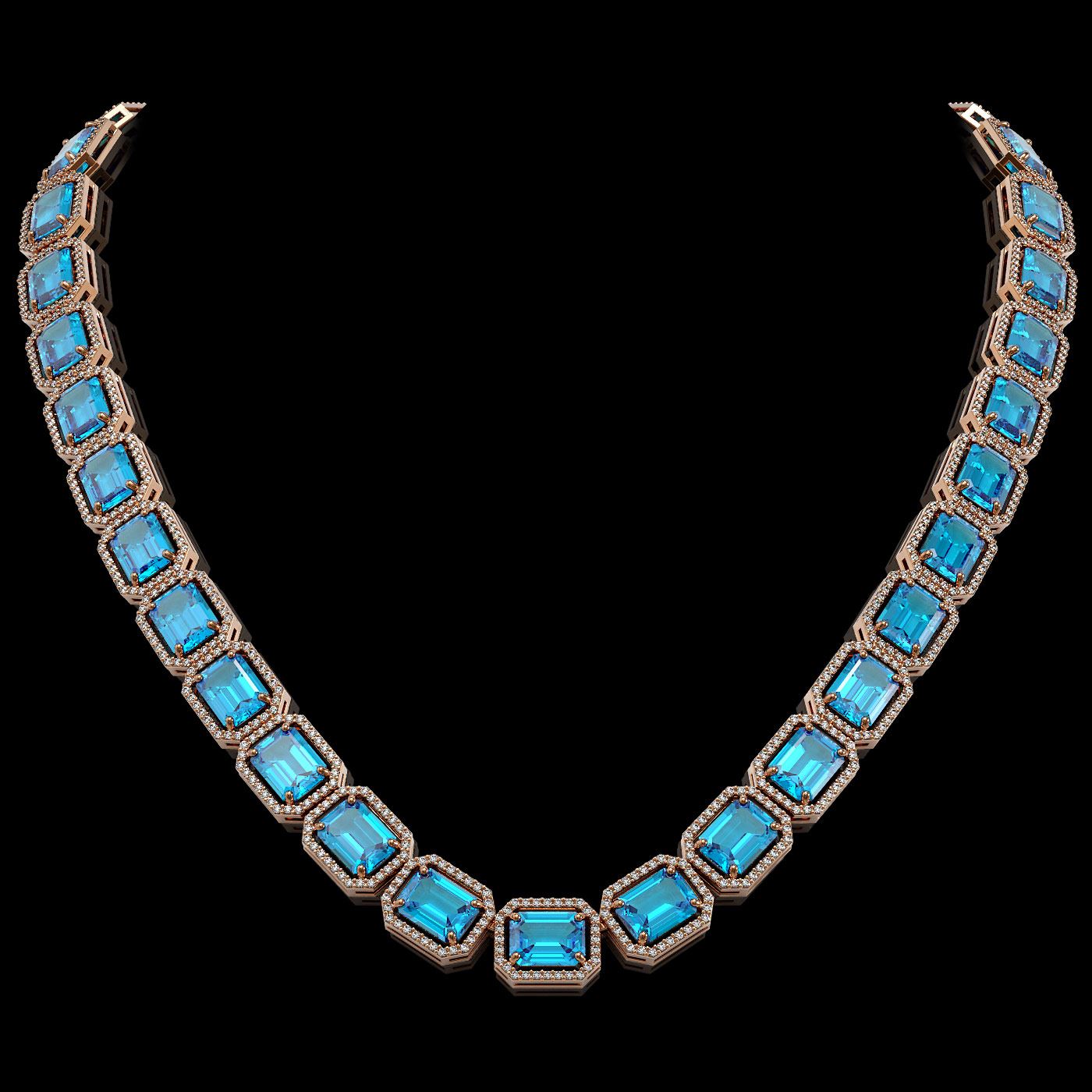 REF-836G4W - SKU: 41508 ---- 79.01 ctw Swiss Topaz & Diamond Micro Pave Halo Necklace 10k Rose Gold