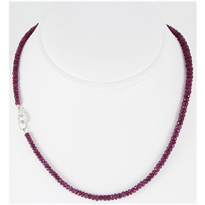 Simple Micro Faceted Natural Ruby Beads Gemstone Necklace Graduated 3.5-5mm. 17inch with Silver Lock