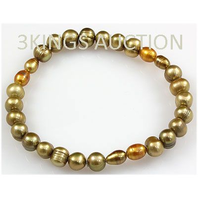 79.83ctw Natural Rice Freshwater Pearls Bracelet **|**|** Natural Freshwater Rice Pearls Elastic Bracelet Dyed in Golden Green Color. 7 inches in size ; MSRP: $300