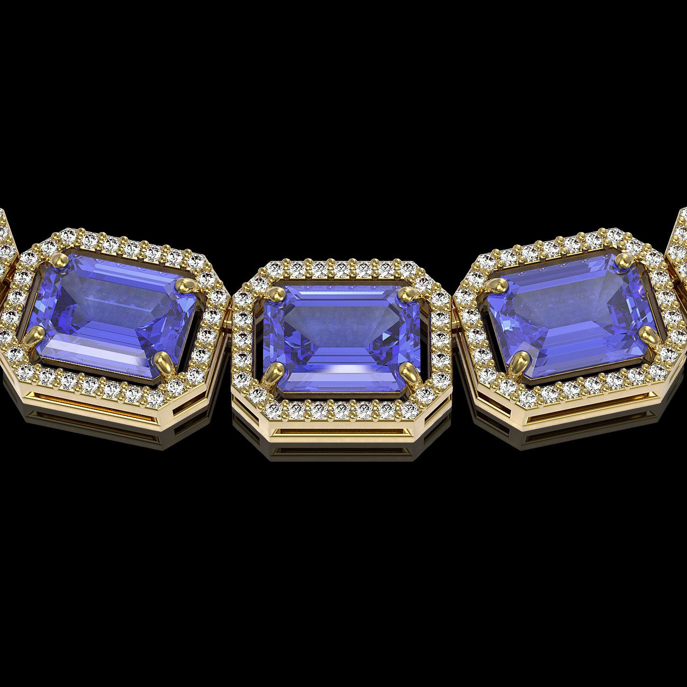 REF-1704H2R - SKU: 41485 ---- 79.99 ctw Tanzanite & Diamond Micro Pave Halo Necklace 10k Yellow Gold
