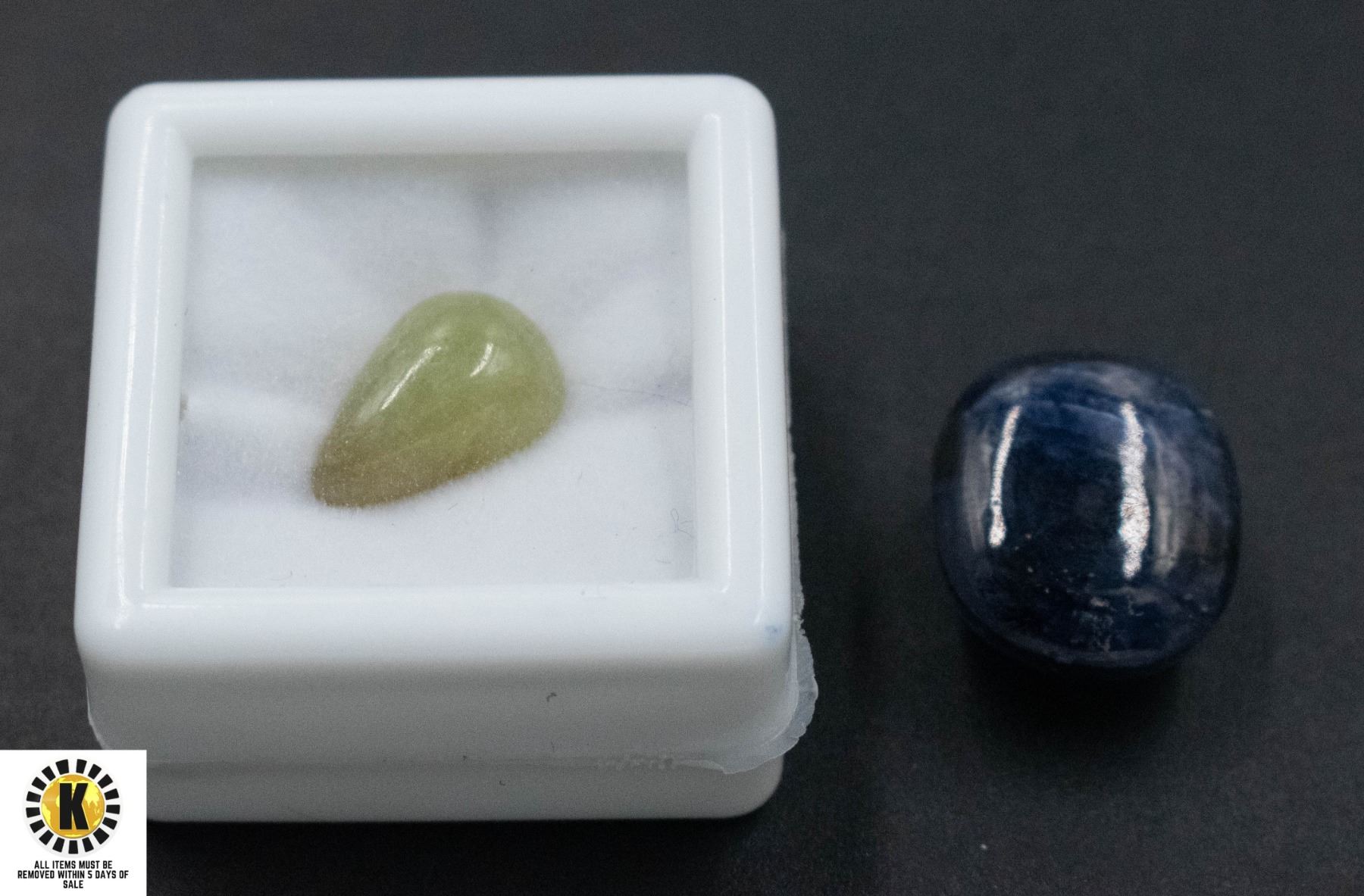 HEATED BLUE SAPPHIRE 13.6 X 15.6MM/UNTREATED GREEN SPHENECEYLON 8.6 X 19.8MM