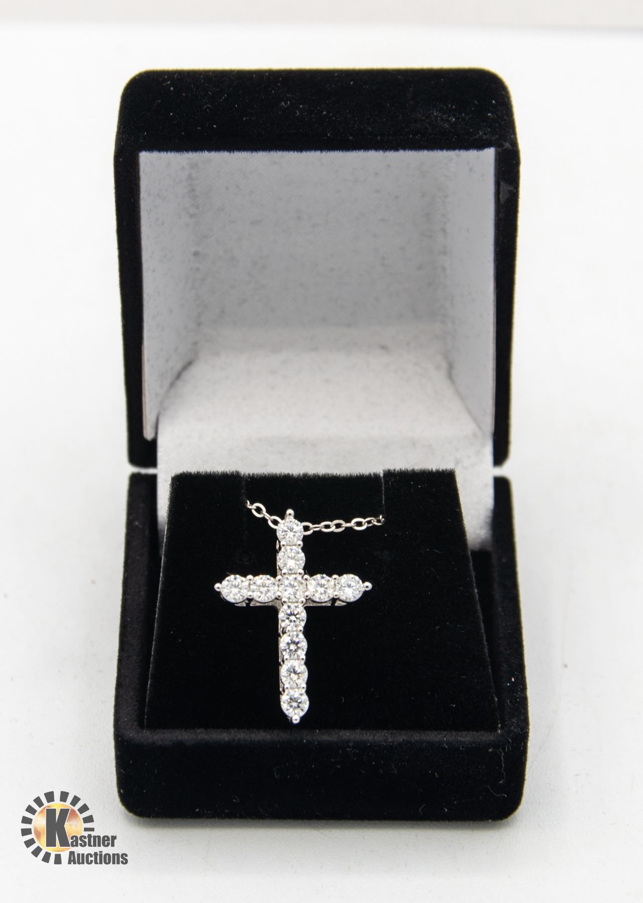 CROSS PENDANT WITH 11 FULL CUT ROUND MOISSANITE SET IN STERLING SILVER PENDANT AND NECKLACE RETAIL VALUE $800.00