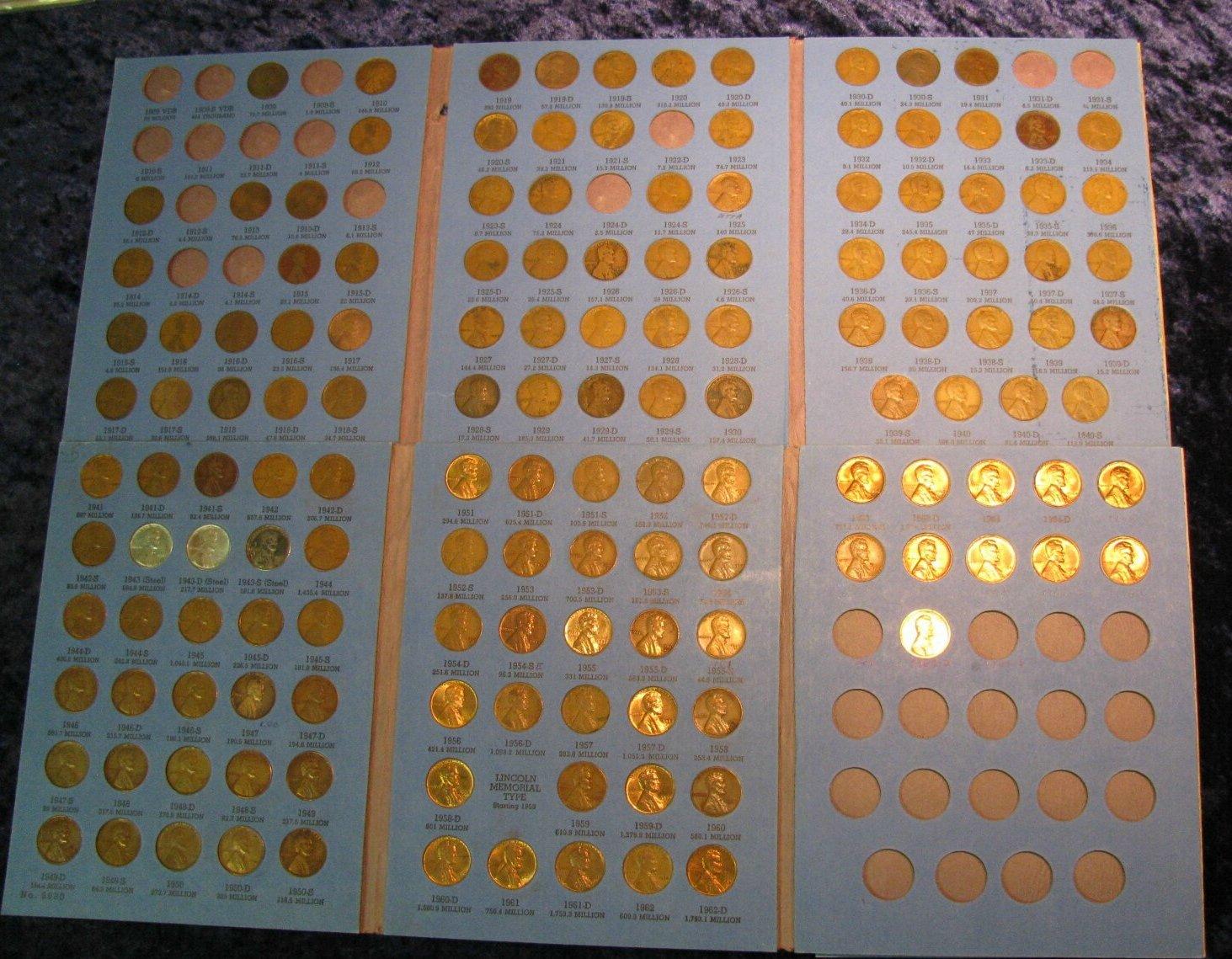 791. 1909-1969 Partial Set Lincoln Cents. 142-Coins in 2 Whitman Coin Folders.