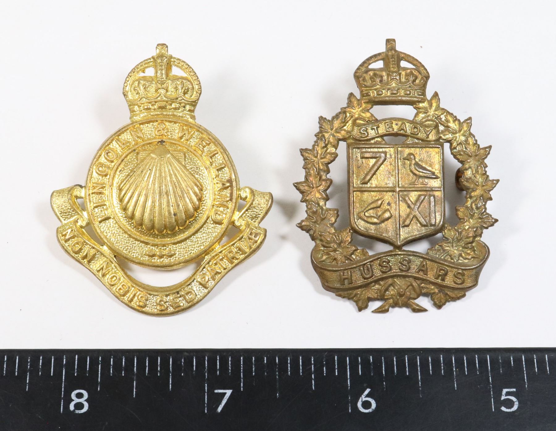 AND 7TH/XITH HUSSARS WORLD WAR TWO CANADA ALLIED FORCES LOT OF 2 CAP BADGES