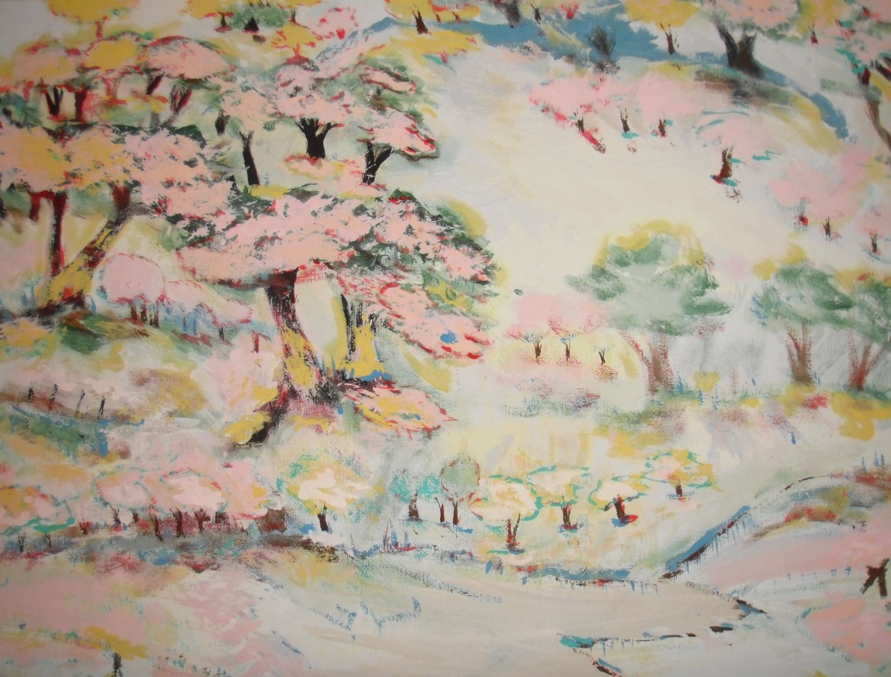 Printemps Spring, original painting by LangdonArt - discover many of the sections minis landscapes too for your fun !