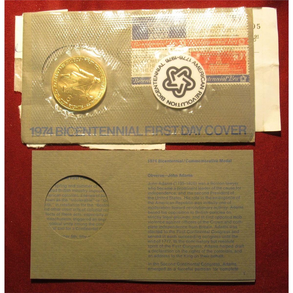 792 1974 Postmarked American Revolution Bicentennial First Day Cover & Medal with original invoice from December 1975, where the BU yer paid $5.00.
