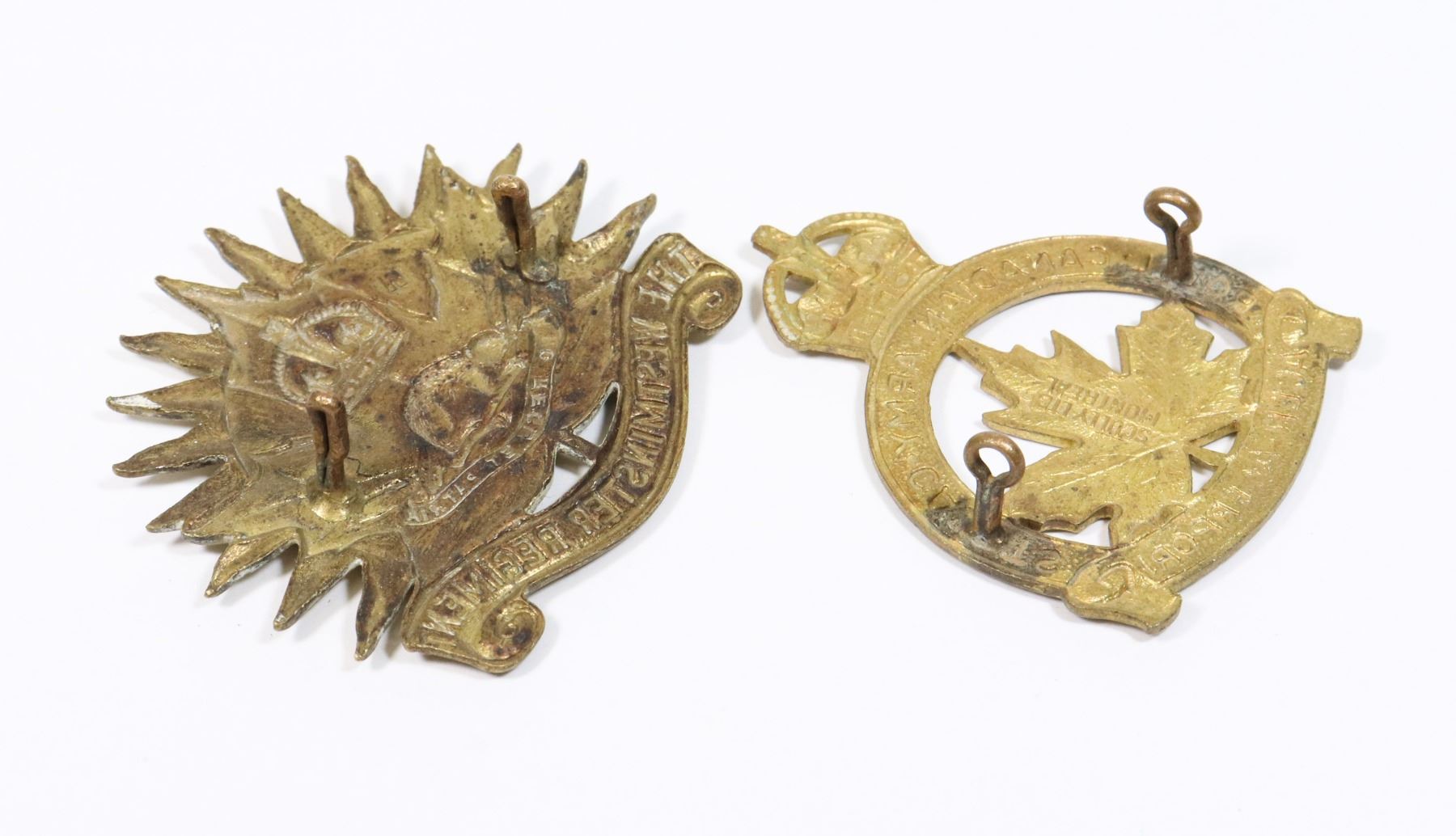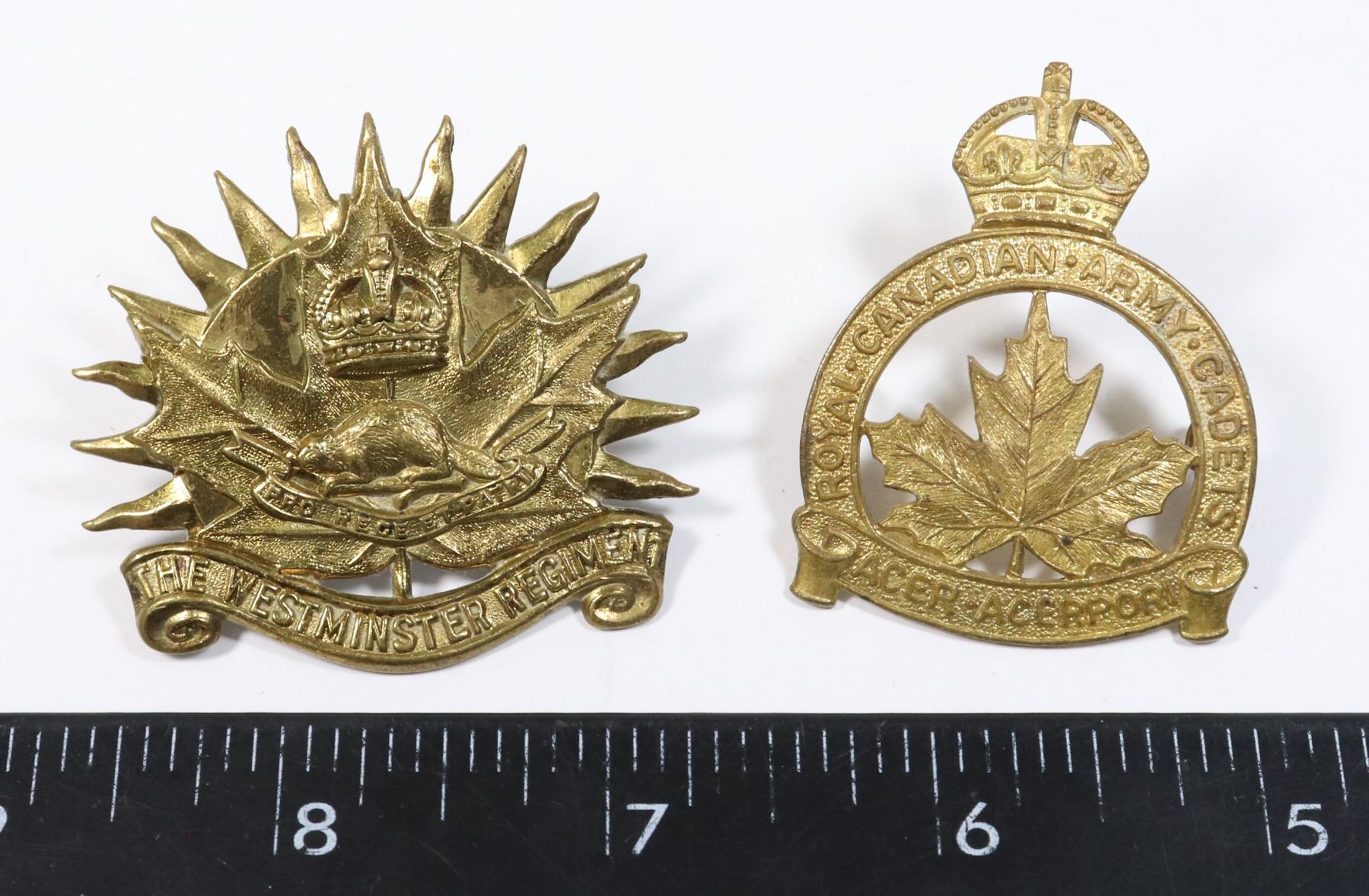 THE WESTMINSTER REGIMENT AND ROYAL CANADIAN ARMY CADETS WORLD WAR TWO CANADA ALLIED FORCES LOT OF 2 CAP BADGES