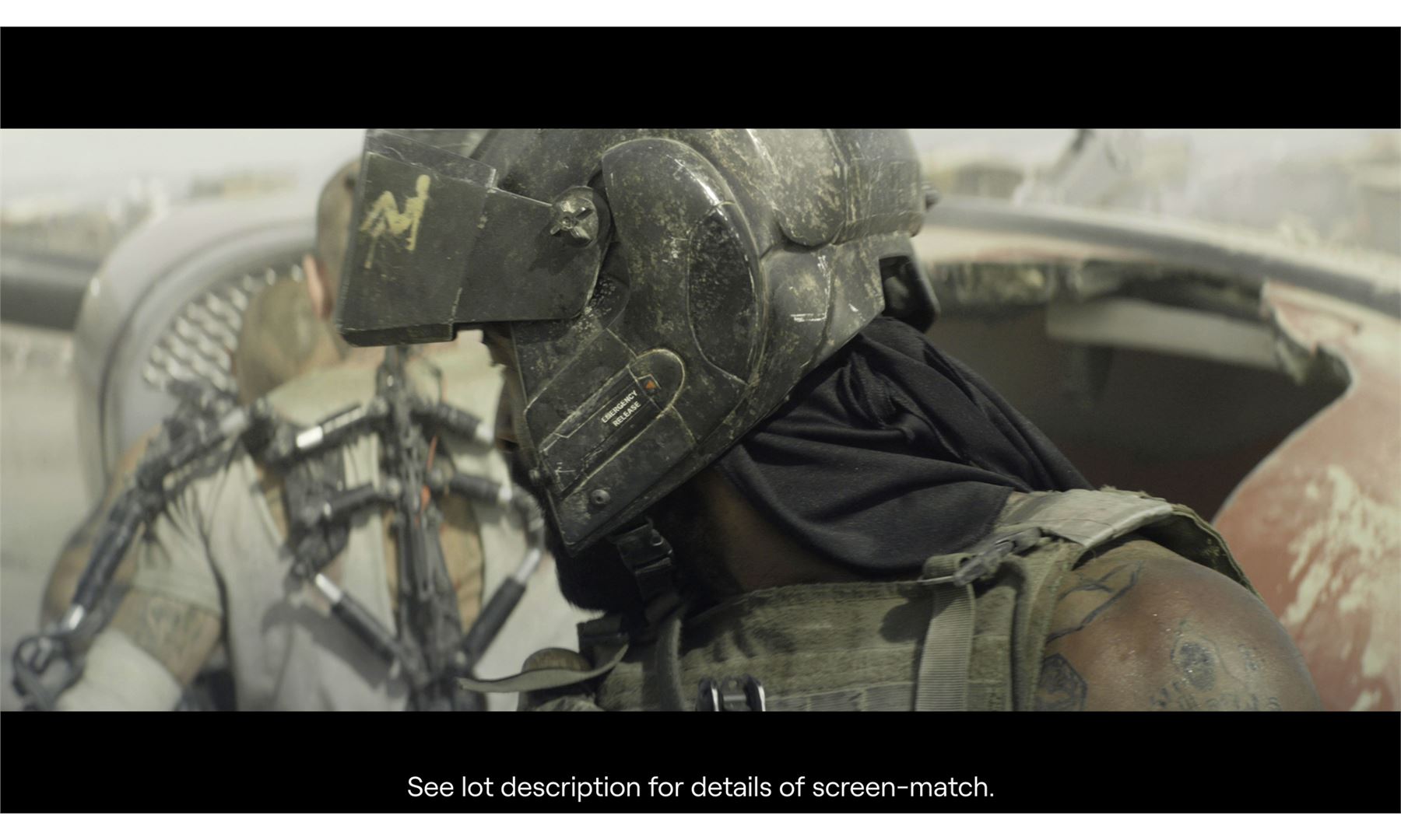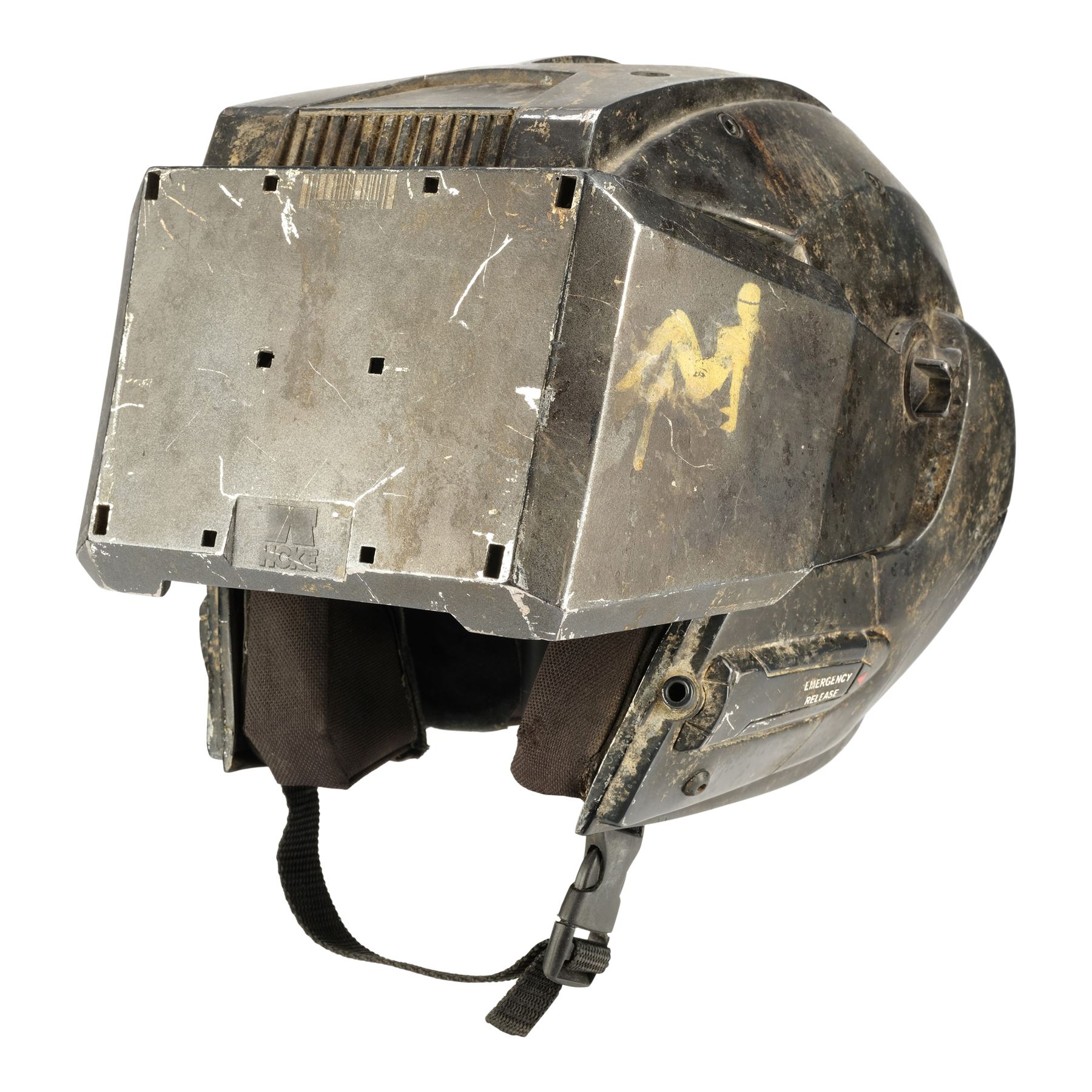 ELYSIUM (2013) - Manuel's (Adrian Holmes) Screen-Matched Data Heist Helmet - Manuel's (Adrian Holmes) screen-matched data heist helmet from Neill Blomkamp's Elysium. Manuel wore his helmet with a live stream feed that allowed Spider (Wagner Moura) to watch him and Max (Matt Damon) hijack John Carlyle (William Fichtner) for his access codes to Elysium. This helmet screen-matches based on the unique production-made distressing throughout the sequence.