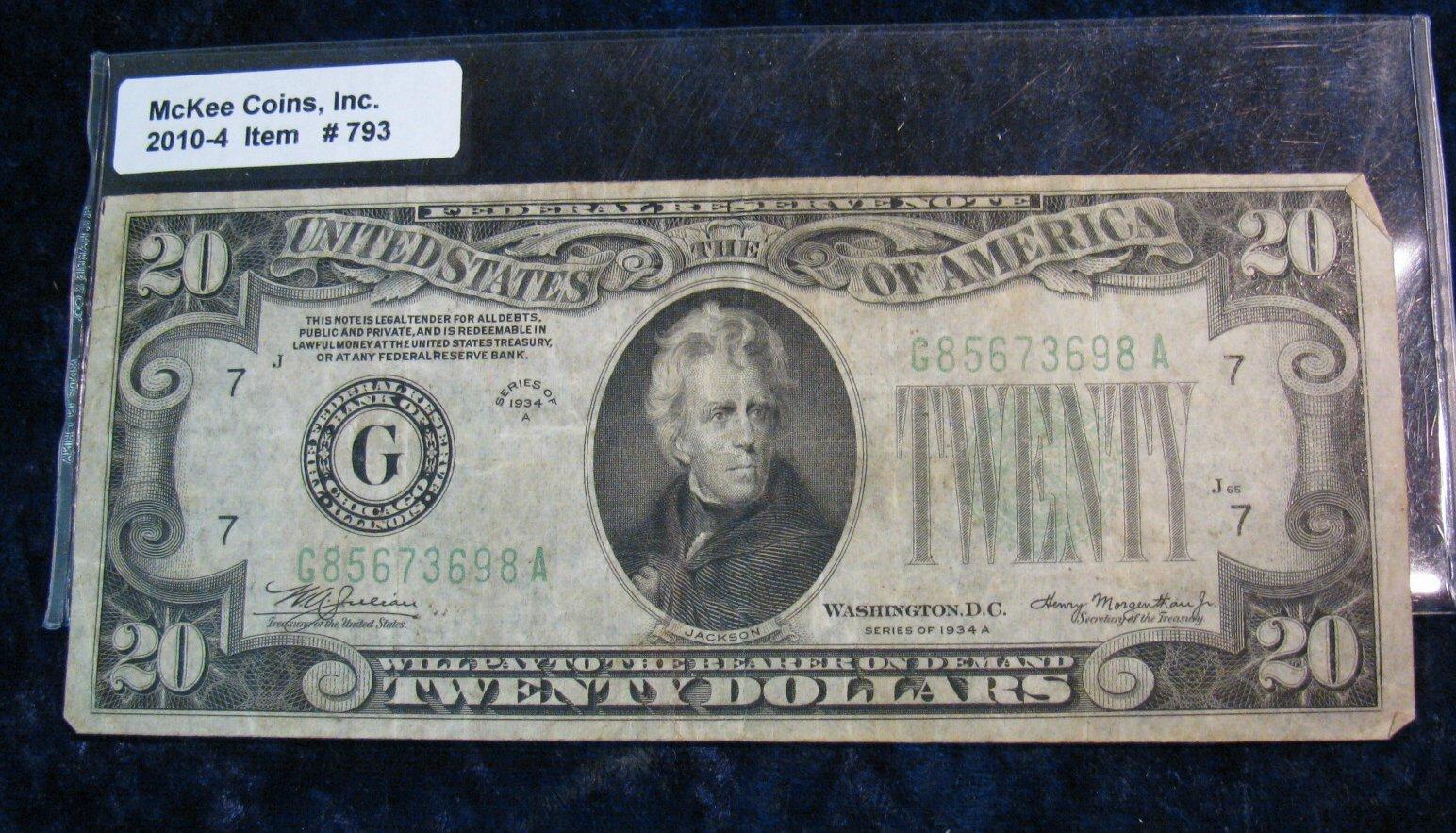 793. Series 1934A $20 Federal Reserve Note "G" VG