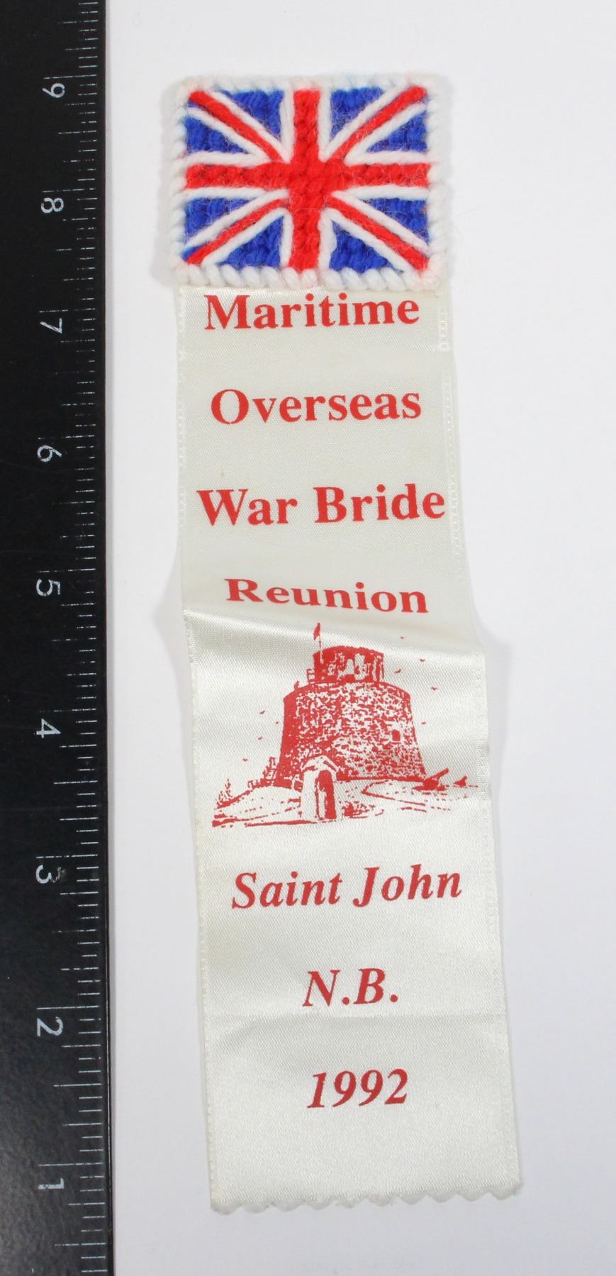 RIBBON SAINT JOHN NEW BRUNSWICK 1992, WITH UNION JACK YARN FLAG.