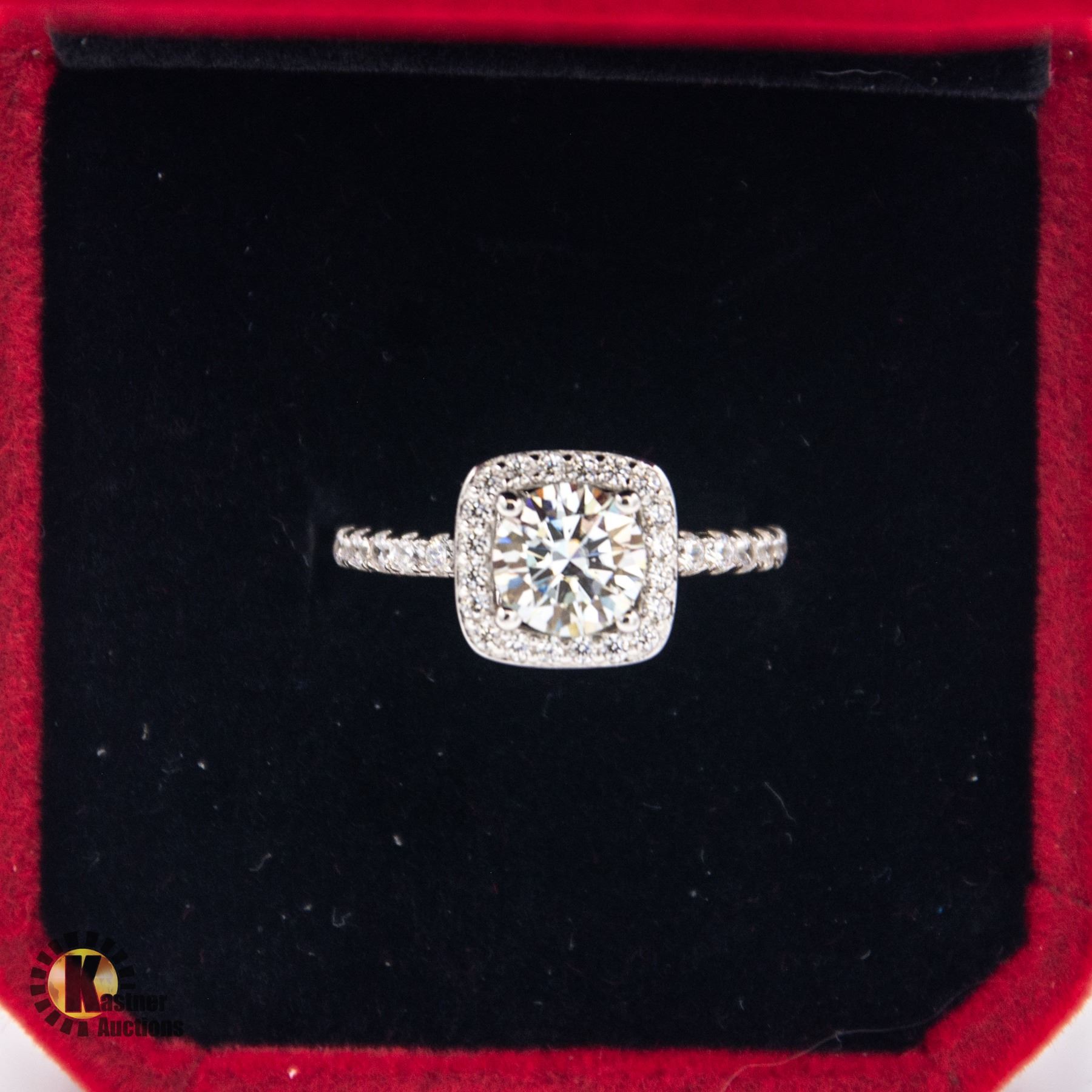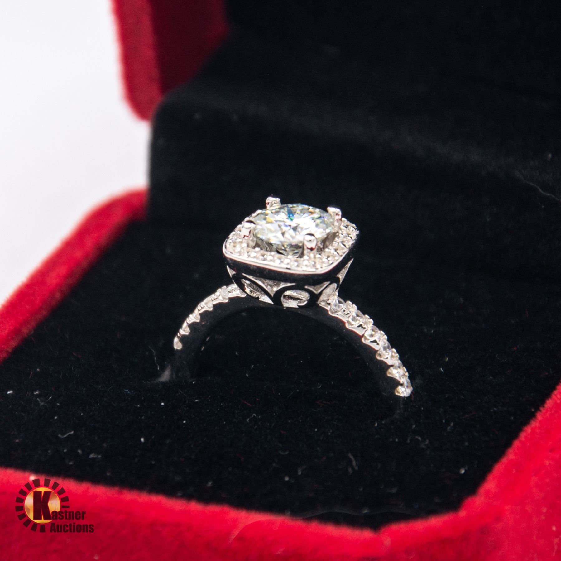 MOISSANITE STONE VVS D COLOR SET IN SQUARE HALO IN 925 SILVER RING SIZE 5.5 **ALL ITEMS MUST BE REMOVED BY 5PM SATURDAY, OCTOBER 26th 2024. ALL REMAINING ITEMS WILL BE SUBJECT TO A $6.00 PER DAY STORAGE CHARGE. ANY ITEMS REMAINING AFTER MONDAY, NOVEMBER 11TH 2024 WILL BE CONSIDERED FORFEITED. NO REFUNDS WILL BE ISSUED FOR FORFEITED ITEMS. TO SCHEDULE A PICK UP APPOINTMENT CLICK HERE