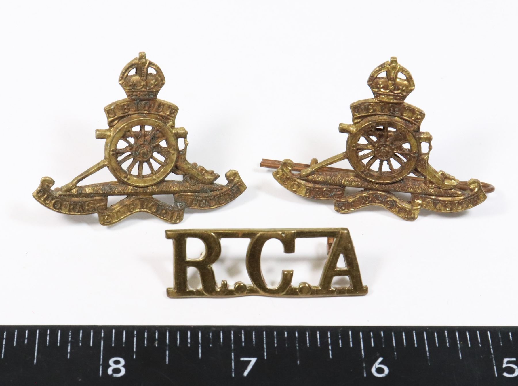 INCLUDES PAIR COLLAR BADGES AND SINGLE SHOULDER TITLE WORLD WAR TWO CANADA ALLIED FORCES
