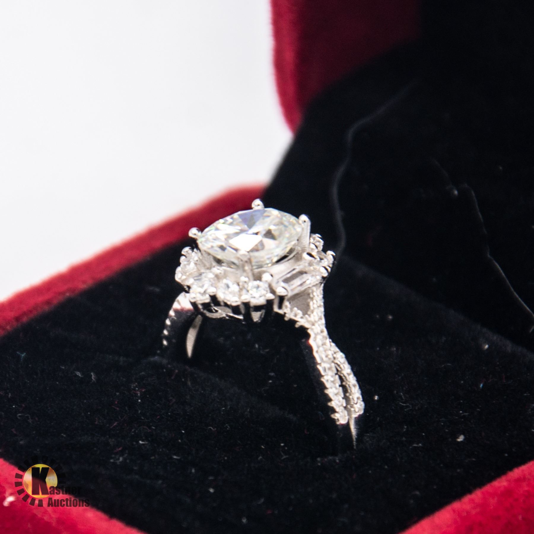 MOISSANITE STONE VVS D COLOR SET IN CENTER WITH BAGUETTE SET ON EITHER SIDE WITH MARQUISE AND ROUND SET ON EITHER END SET IN 925 SILVER RING SIZE 7.5 **ALL ITEMS MUST BE REMOVED BY 5PM SATURDAY, OCTOBER 26th 2024. ALL REMAINING ITEMS WILL BE SUBJECT TO A $6.00 PER DAY STORAGE CHARGE. ANY ITEMS REMAINING AFTER MONDAY, NOVEMBER 11TH 2024 WILL BE CONSIDERED FORFEITED. NO REFUNDS WILL BE ISSUED FOR FORFEITED ITEMS. TO SCHEDULE A PICK UP APPOINTMENT CLICK HERE