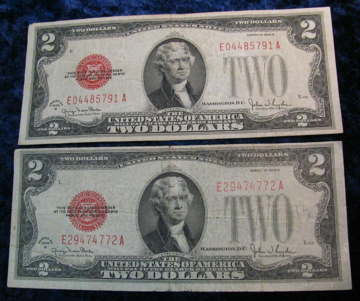 797. (2) Series 1928G 2-Dollar United States Notes.