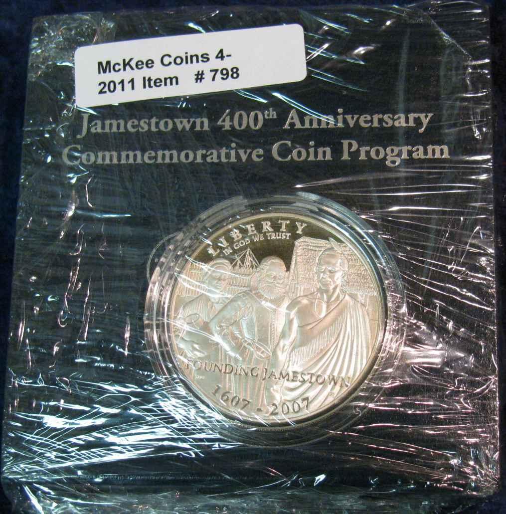 798. 1607-2007 P Jamestown 400th Anniversary Proof Commemorative Silver Dollar. Original as issued with Certificate of Authenticity.