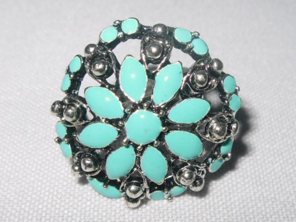 7CTW TEAL FLOWER BRASS ADJUSTABLE RING **|**|** 7CTW TEAL FLOWER BRASS ADJUSTABLE RING ; MSRP: $150