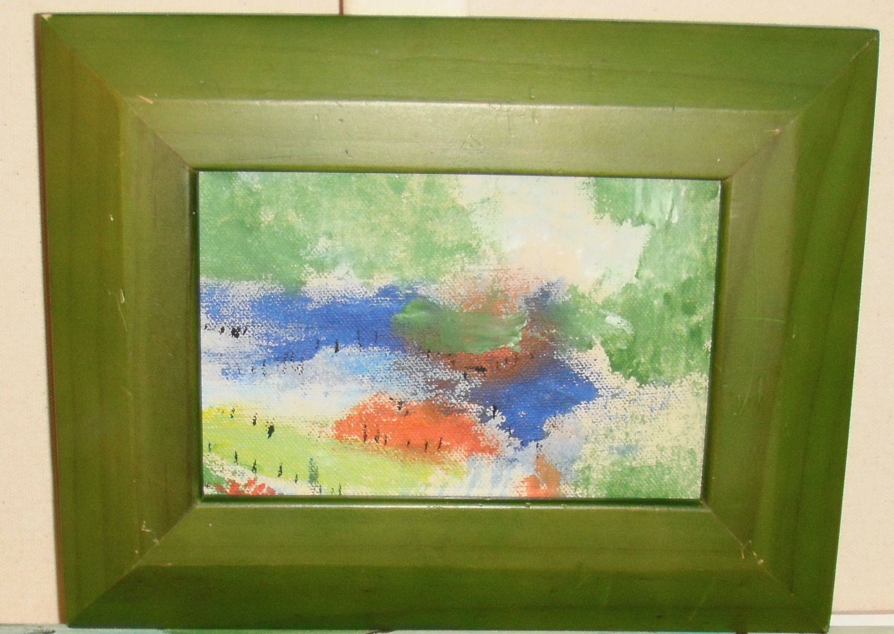 - Titrée 'LangdonArt Avril7' cette petite peinture originale 7x9 pouces numéro 85 originale décorative de collection acrylique sur toile pour table, étagère, presse-papier sur pupitre à la maison ou au bureau, utiliser ce cadre en métal si vous désirez, commencez votre collection de peintures intéressantes créées par Artiste LangdonArt ou donnez en cadeau maintenant !