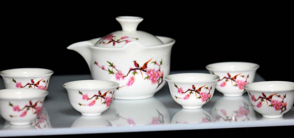 7PCS FINE CHINESE KUNG FU TEA SET 1 CERAMIC TEAPOT, 6 P **|**|** 7PCS FINE CHINESE KUNG FU TEA SET 1 CERAMIC TEAPOT, 6 PORCELAIN BONE CHINA TEA CUPS UNIQUE GAIWAN ; MSRP: $0