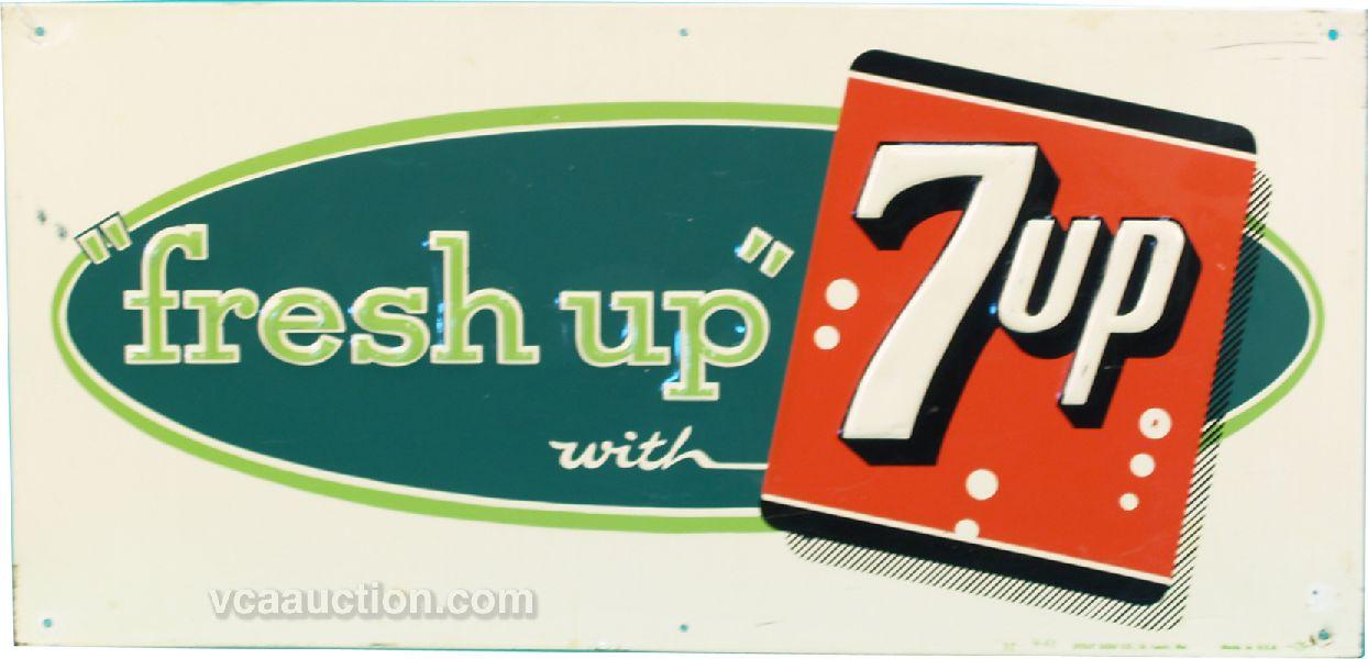 7UP "Fresh Up" Embossed Tin Sign - 23" x 11"