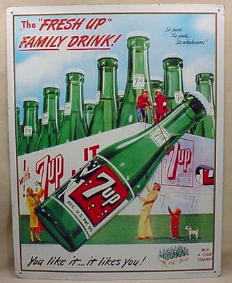 7UP TIN ADVERTISING SIGN - NEWER - Approx. 13" by 17"
