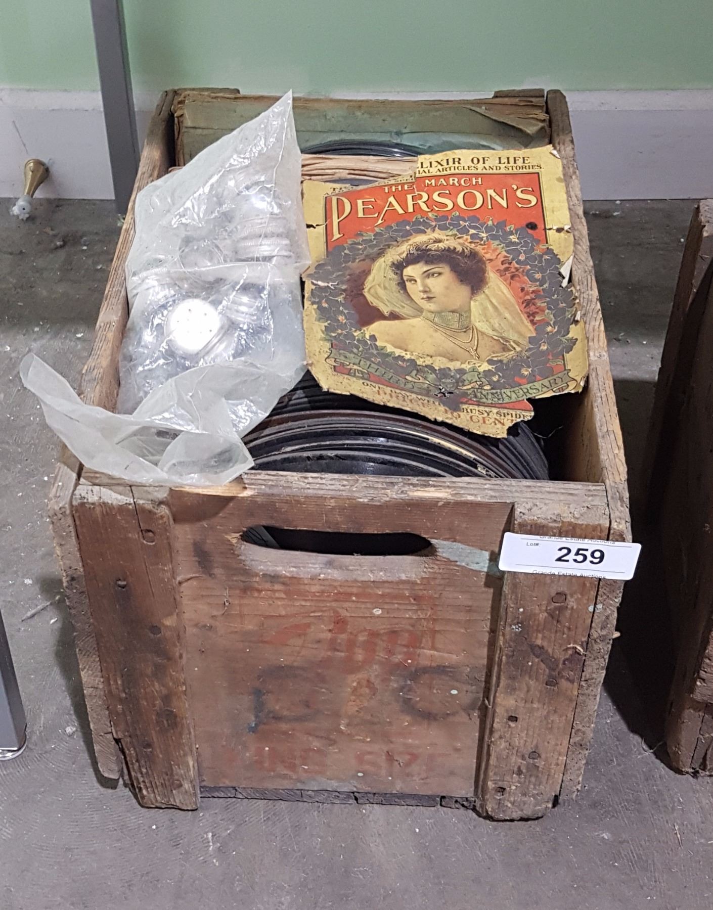 7UP WOODEN POP CRATE W/MISC RECORDS