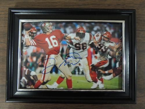 7X5 FRAMED FOOTBALL PHOTO AUTOGRAPH JOE MONTANA. NO COA. AS SHOWN. VIEW PICTURE FOR DETAIL. PLEASE BE ADVISED, AND INFORMED REGARDING SIGNATURES OR AUTOGRAPHS THAT WE SELL AT AUCTION: WE ARE NOT AUTHENTICATORS, AND WE DO NOT AUTHENTICATE, OR VALIDATE ANY AUTOGRAPHS OR SIGNATURES THAT WE OFFER AT AUCTION. SOME AUTOGRAPHS OR SIGNATURES MAY COME WITH AN AUTHENTICATION FROM ANY ONE OF LITERALLY HUNDREDS OF AUTHENTICATORS ACROSS THE COUNTRY, AND AROUND THE WORLD. WE DO NOT ENDORSE ANY AUTHENTICATOR, NOR DO WE GUARANTEE THAT ANY AUTOGRAPH OR SIGNATURE IS AUTHENTIC, OR THAT IT WILL PASS AUTHENTICATION BY ANY AUTHENTICATOR. ALL AUTOGRAPHS OR SIGNATURES ARE SOLD
