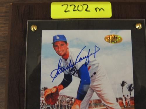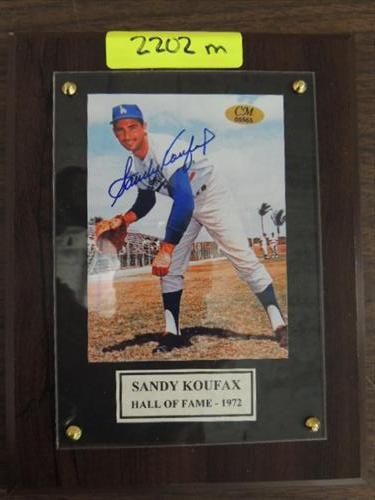 7X9 PLAQUE BASEBALL PHOTO AUTOGRAPH SANDY KOUFAX. INCLUDES COA FROM CHRISTOPHER MORALES #CM 05565. AS SHOWN. VIEW PICTURE FOR DETAIL. PLEASE BE ADVISED, AND INFORMED REGARDING SIGNATURES OR AUTOGRAPHS THAT WE SELL AT AUCTION: WE ARE NOT AUTHENTICATORS, AND WE DO NOT AUTHENTICATE, OR VALIDATE ANY AUTOGRAPHS OR SIGNATURES THAT WE OFFER AT AUCTION. SOME AUTOGRAPHS OR SIGNATURES MAY COME WITH AN AUTHENTICATION FROM ANY ONE OF LITERALLY HUNDREDS OF AUTHENTICATORS ACROSS THE COUNTRY, AND AROUND THE WORLD. WE DO NOT ENDORSE ANY AUTHENTICATOR, NOR DO WE GUARANTEE THAT ANY AUTOGRAPH OR SIGNATURE IS AUTHENTIC, OR THAT IT WILL PASS AUTHENTICATION BY ANY AUTHENTICATOR. ALL AUTOGRAPHS OR SIGNATURES ARE SOLD