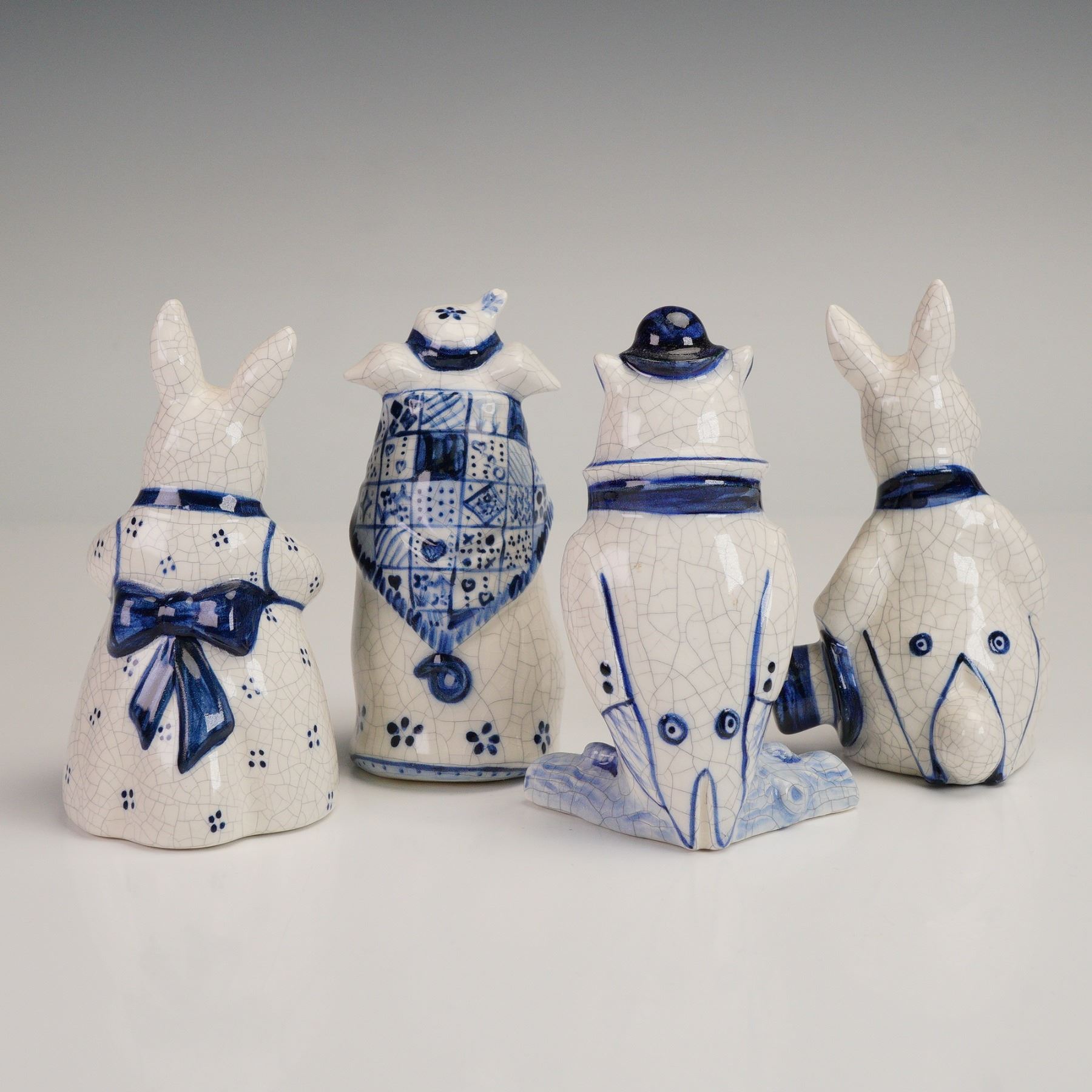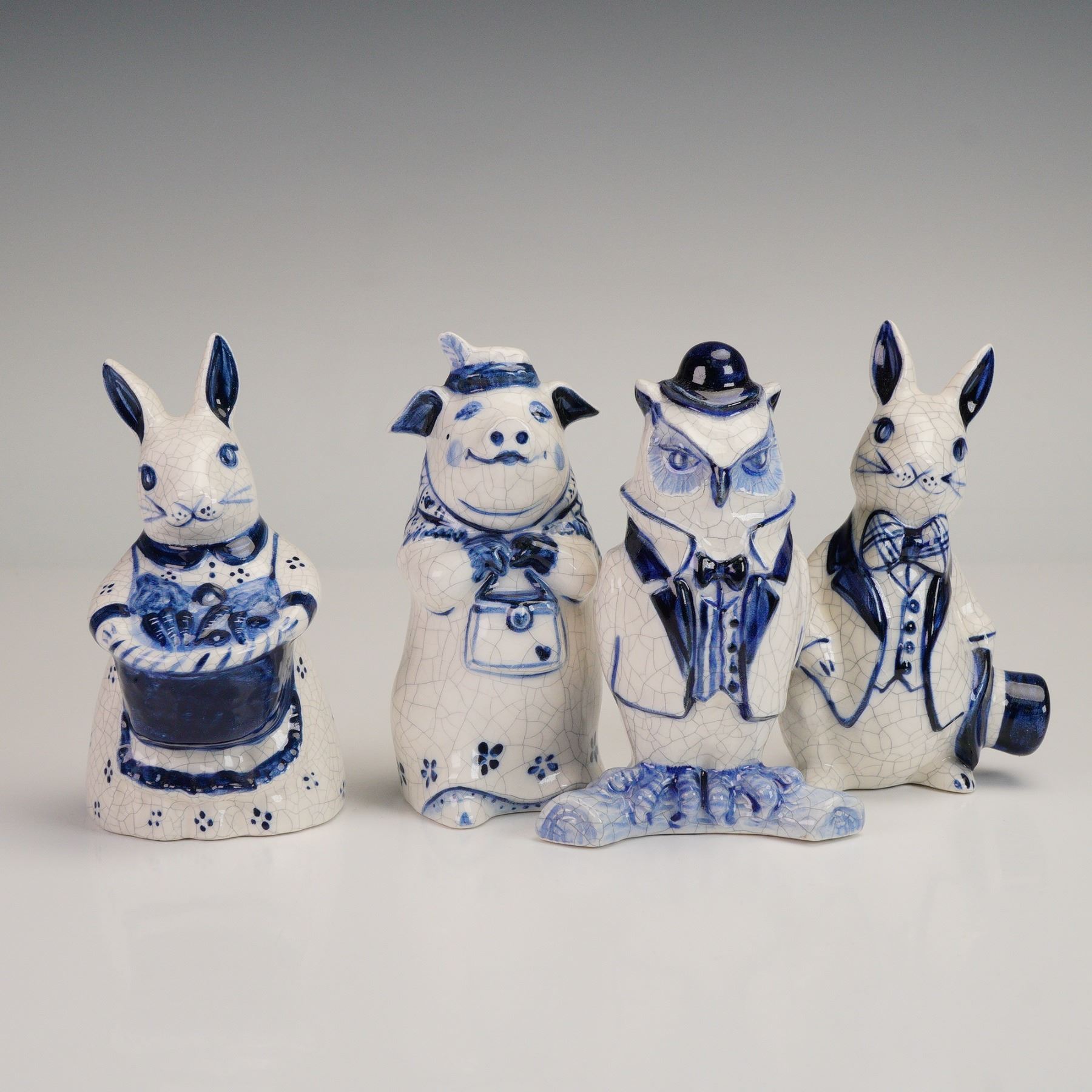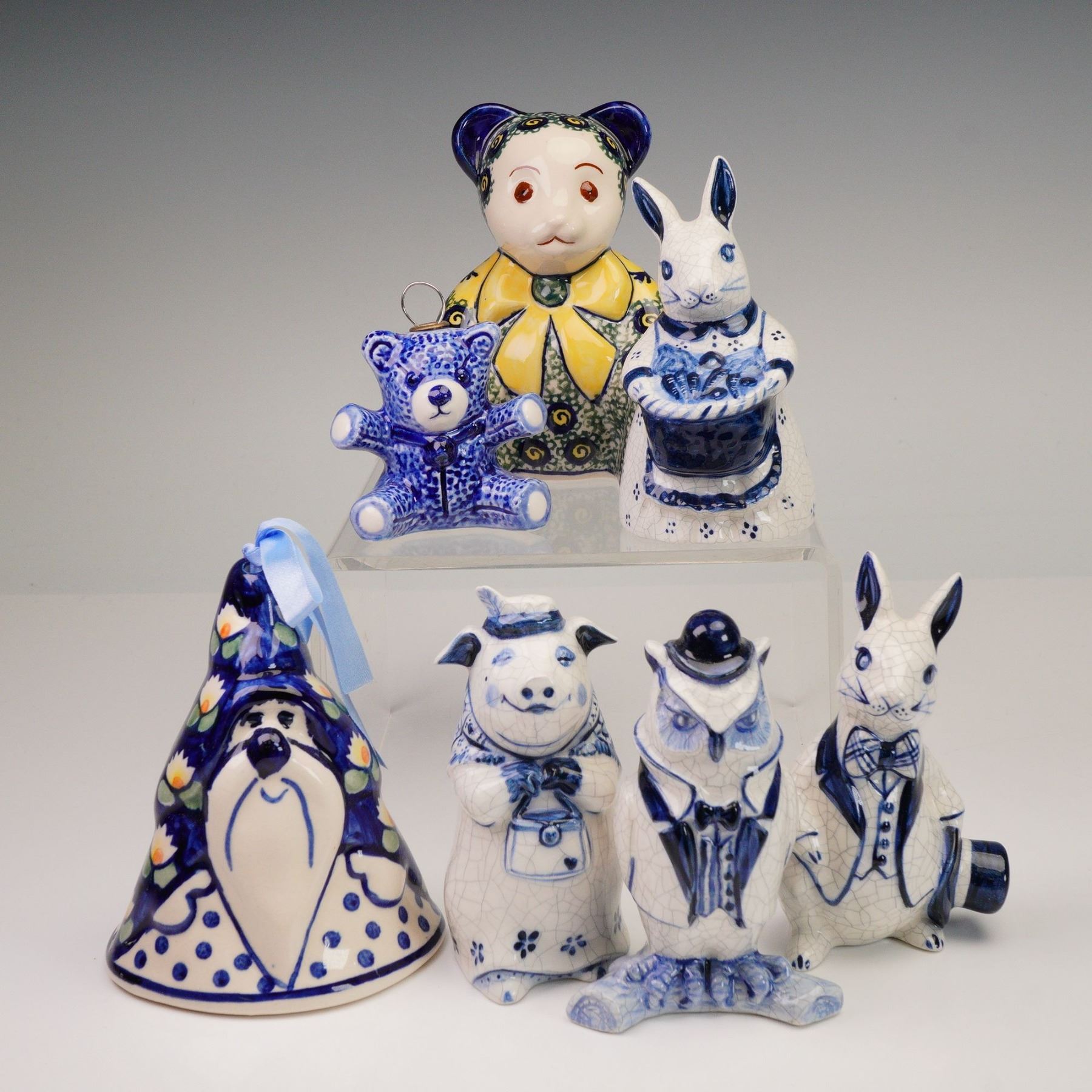 7pc Boleslawec and The Potting Shed Delft-Style Animal Figurines