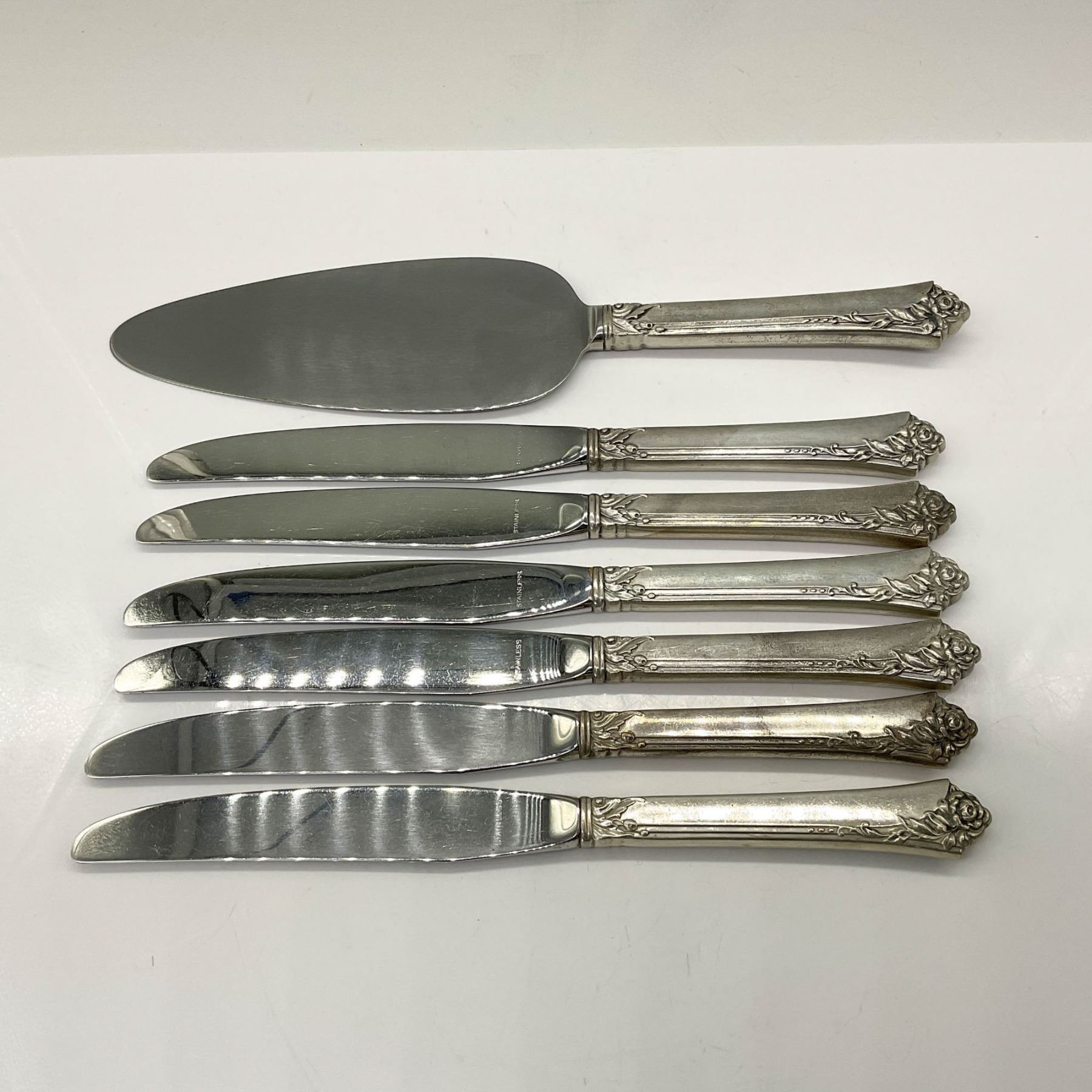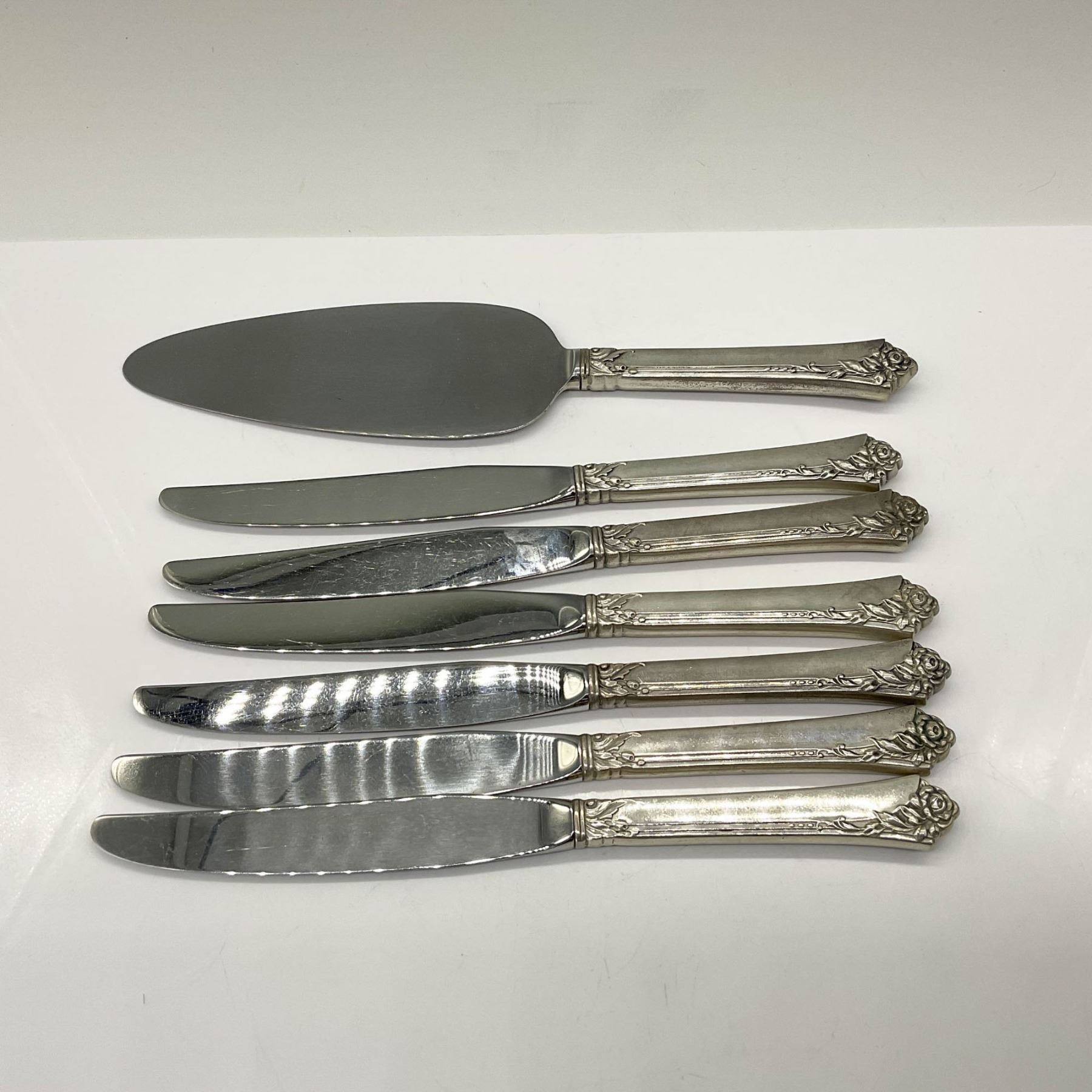 7pc Onieda Sterling Silver Knives and Server, Damask Rose