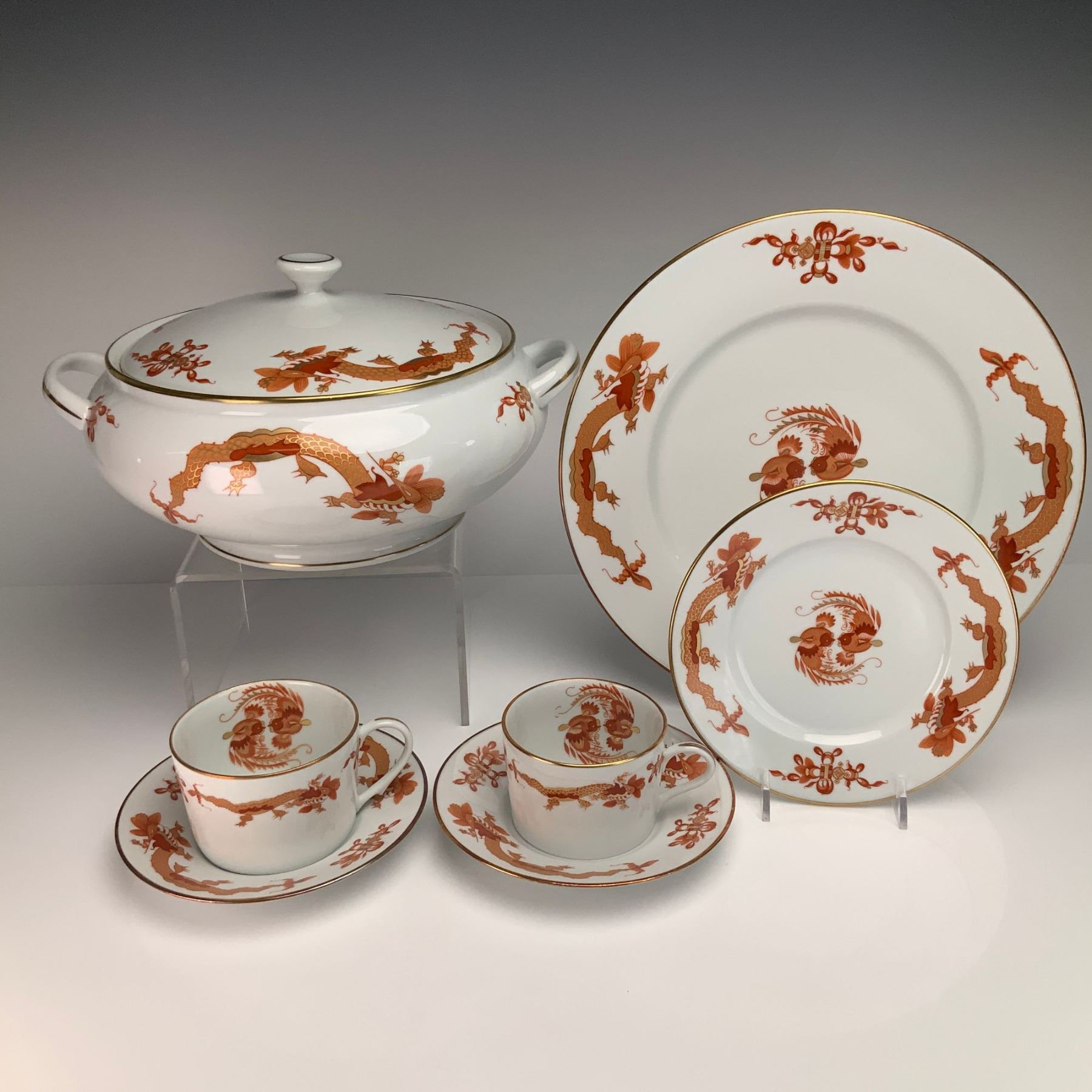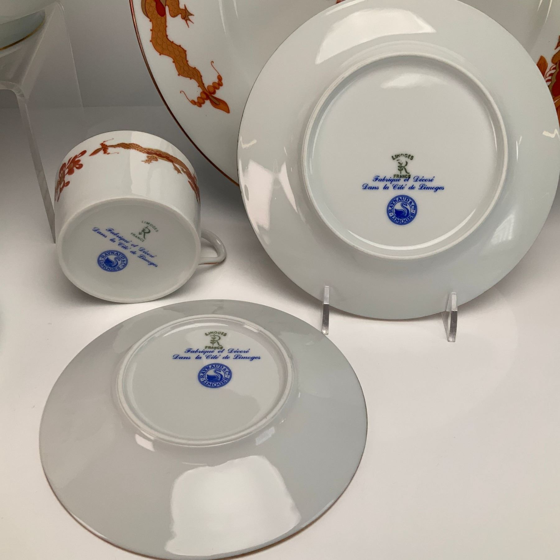 7pc Raynaud Limoges Porcelain Red Dragon Dinnerware Set