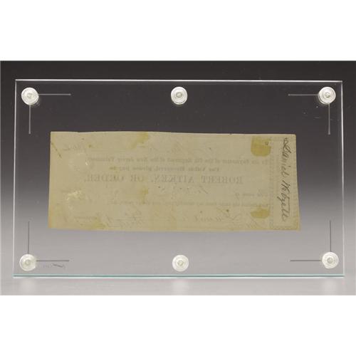 <B>To the Paymaster of the 7th Regiment of the New Jersey Volunteers.</B></I> Jan. 15, 1862, Robert Aitken Sutler, R-7, signed Daniel Wetzell (by his mark), verso penciled Daniel Wetzell, left edge written in pencil "Lieu. D. Hart", center fold, washed out in the center. Good to fine condition. Daniel Wetzell enlisted into the 7th in 1861 as a private. He died in the spring of 1862 of typhoid fever. <BR><BR><b>Shipping:</b> Miscellaneous Collectibles, Smal (<a target="_blank" href="http://www.heritageauctions.com/common/shipping.php">view shipping information</a>)
