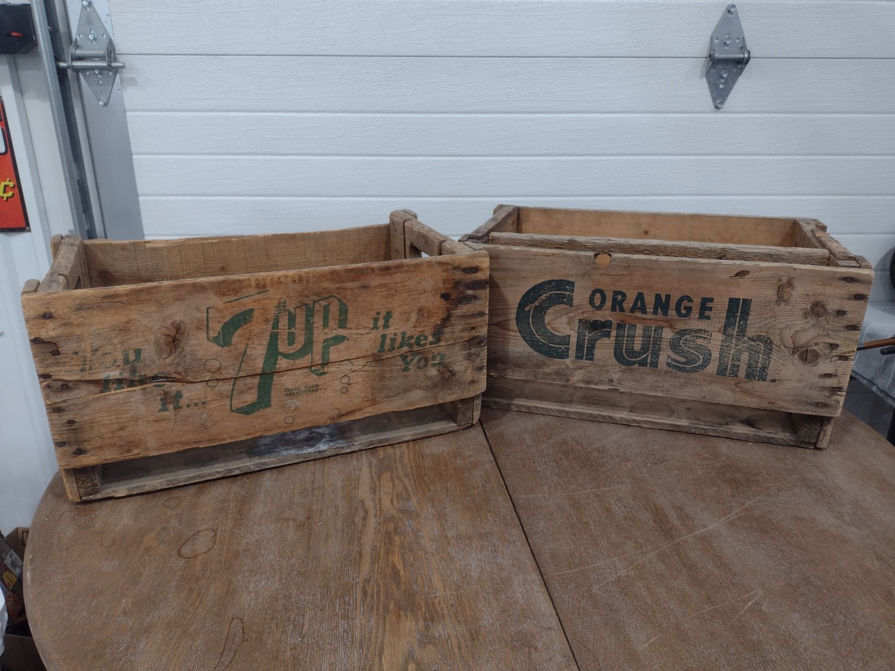 7up and orange crush wooden crates