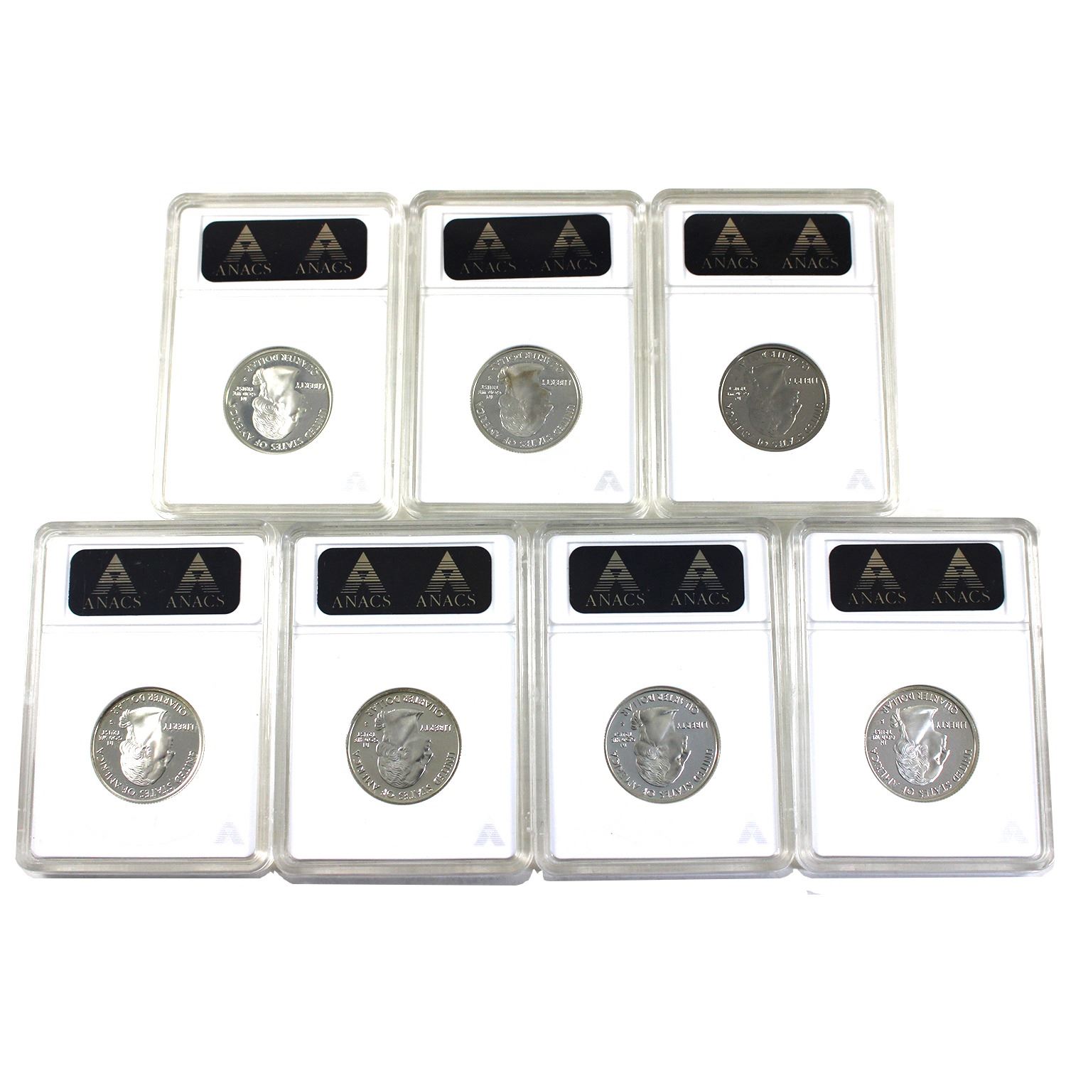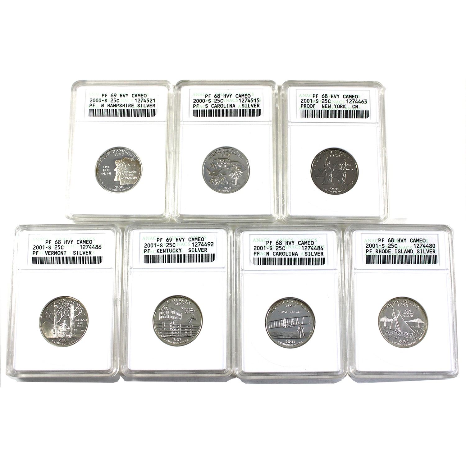 7x 2000 & 2001 USA Silver State Quarters ANACS Certified PF68/69. 7pcs