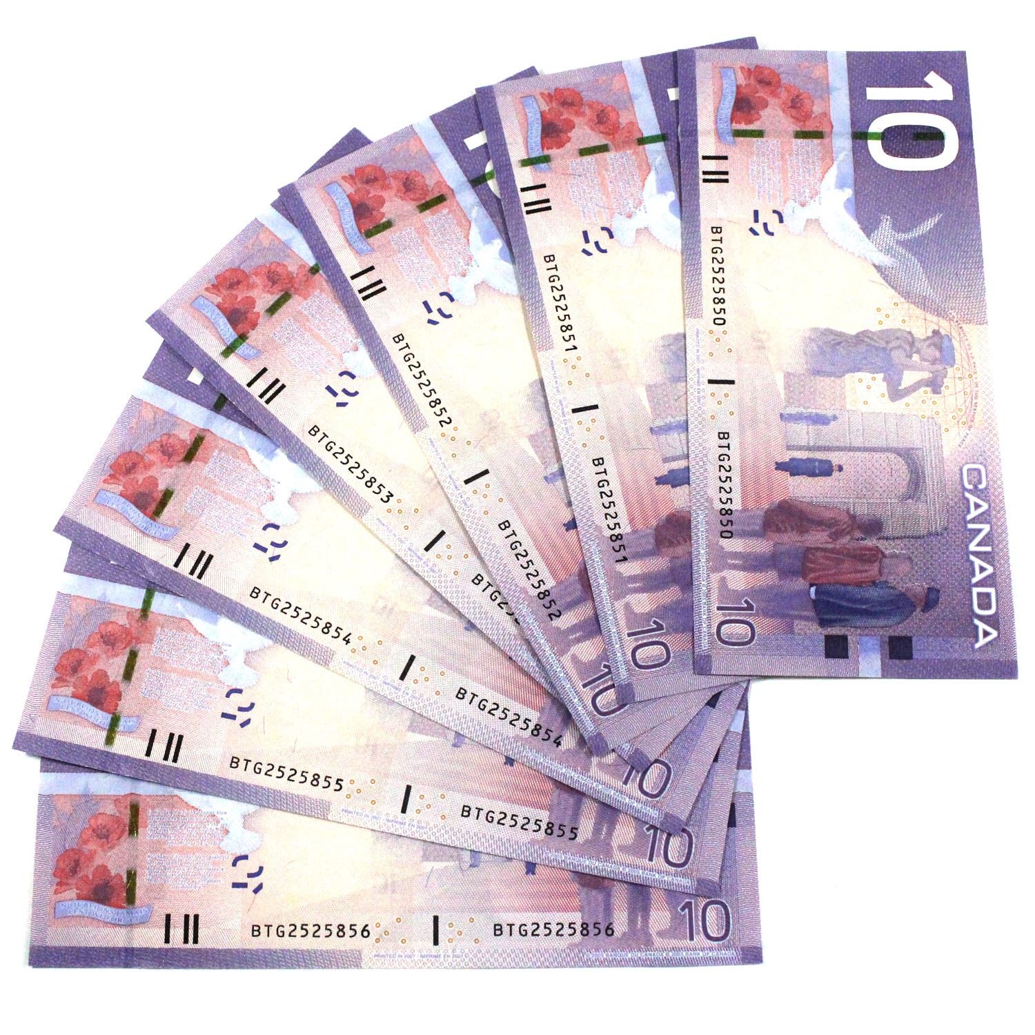 7x 2005 Consecutive 2005 $10 Bank of Canada Note BTG Prefix. 7pcs