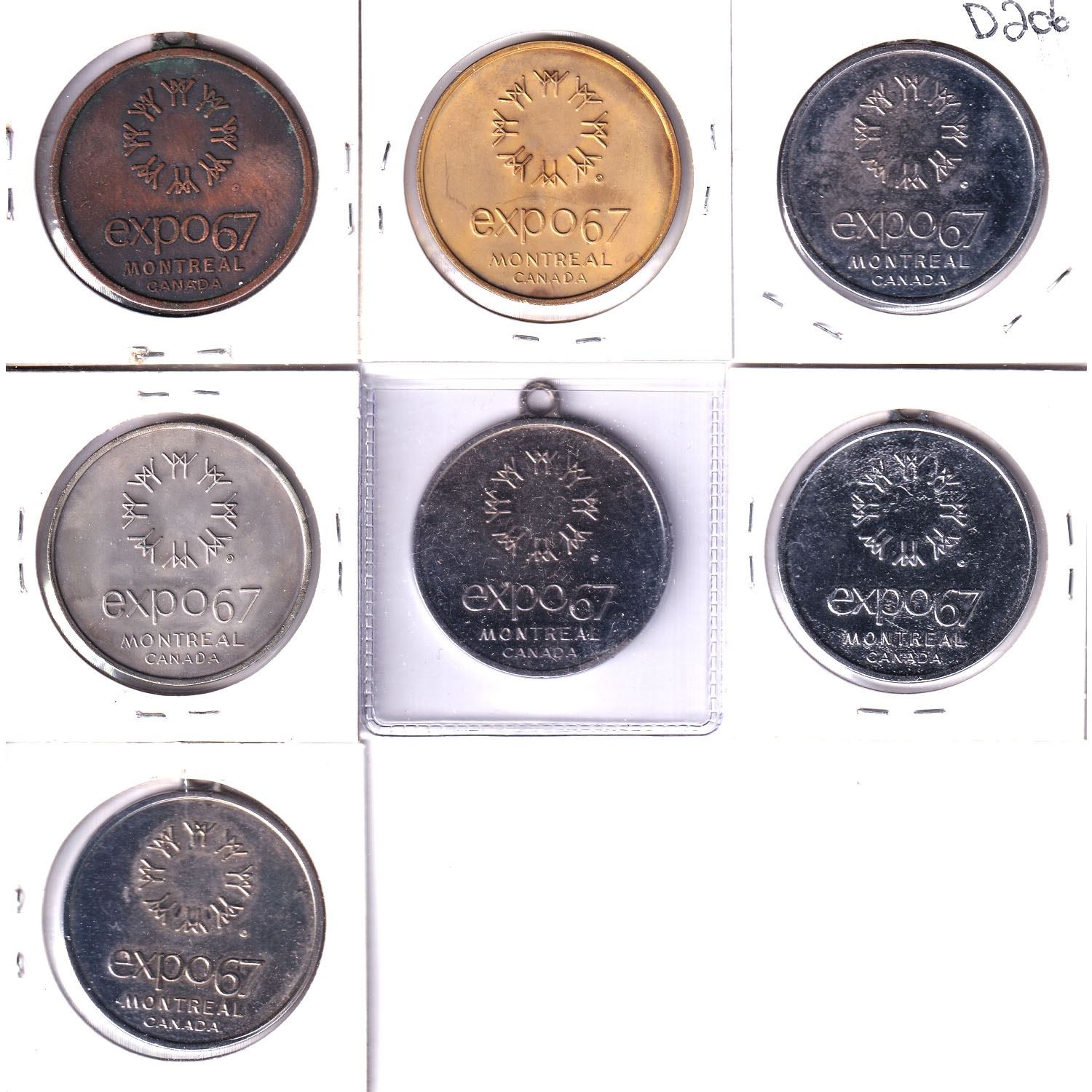 7x Expo 67 Composition Medallion in different metals. 7pcs