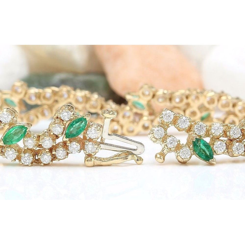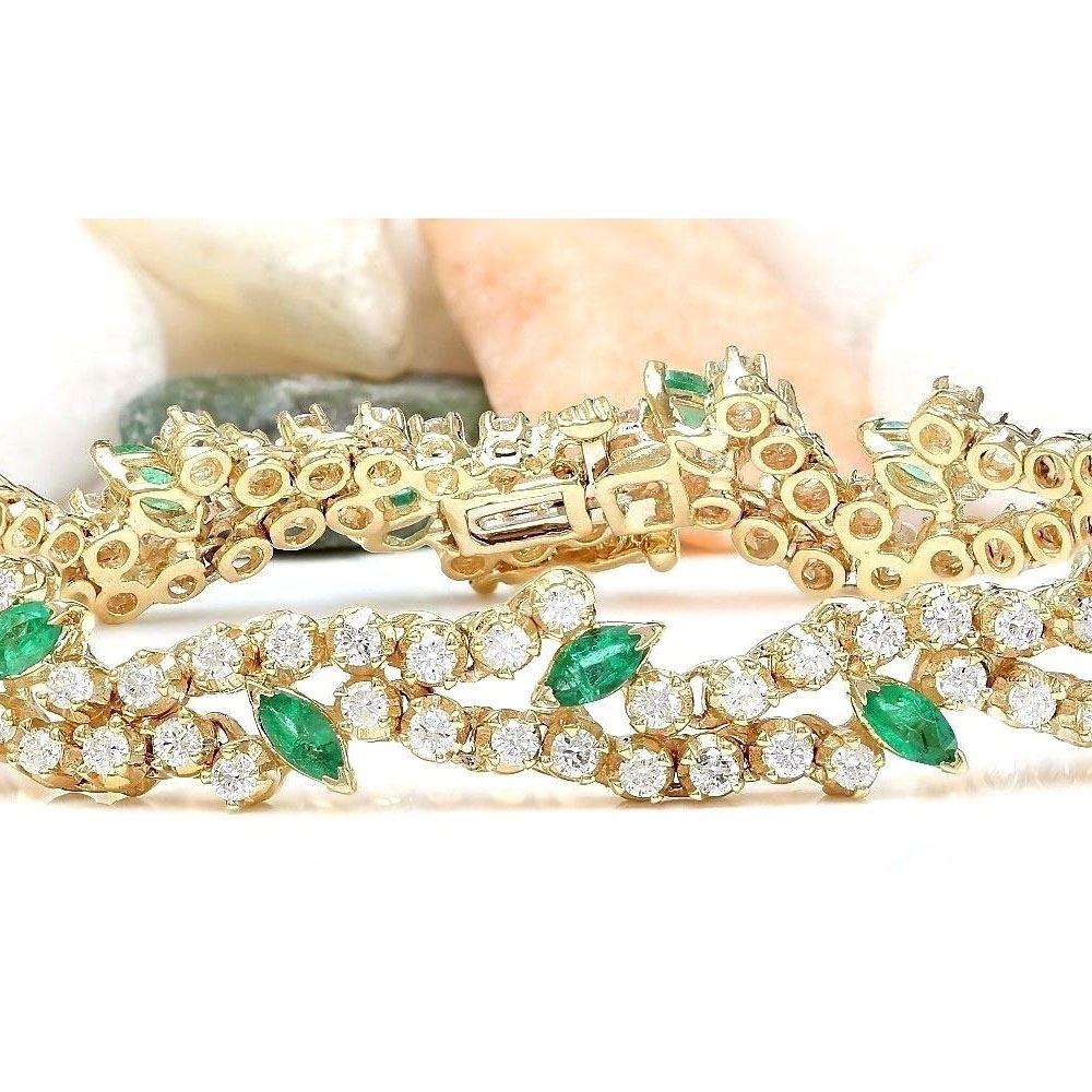 8.00 Carat Natural Emerald 14K Solid Yellow Gold Diamond Bracelet