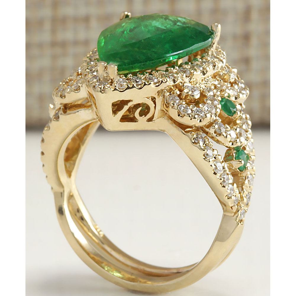 8.00 CTW Natural Emerald And Diamond Ring 14K Solid Yellow Gold