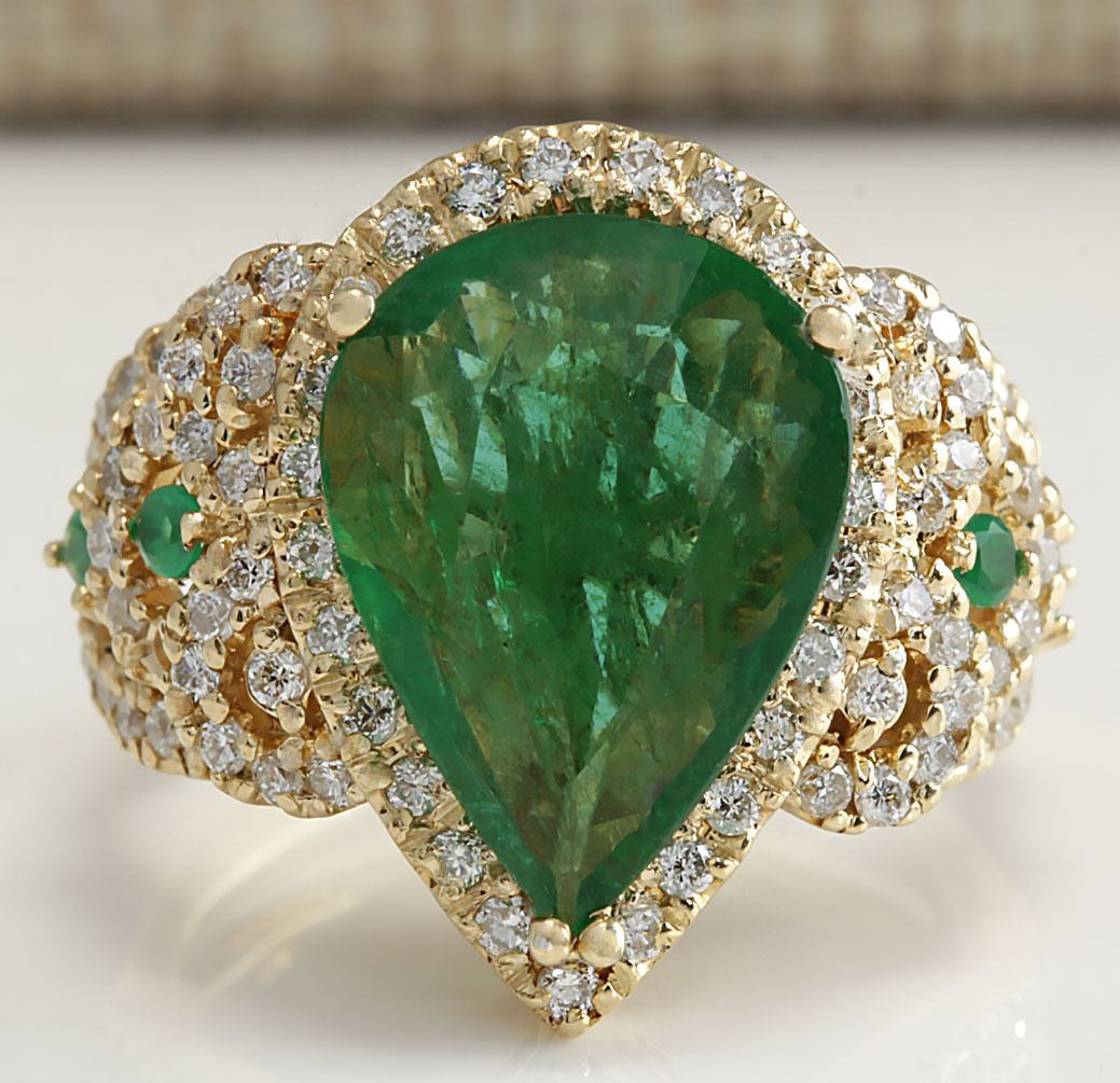 8.00 CTW Natural Emerald And Diamond Ring 18K Solid Yellow Gold